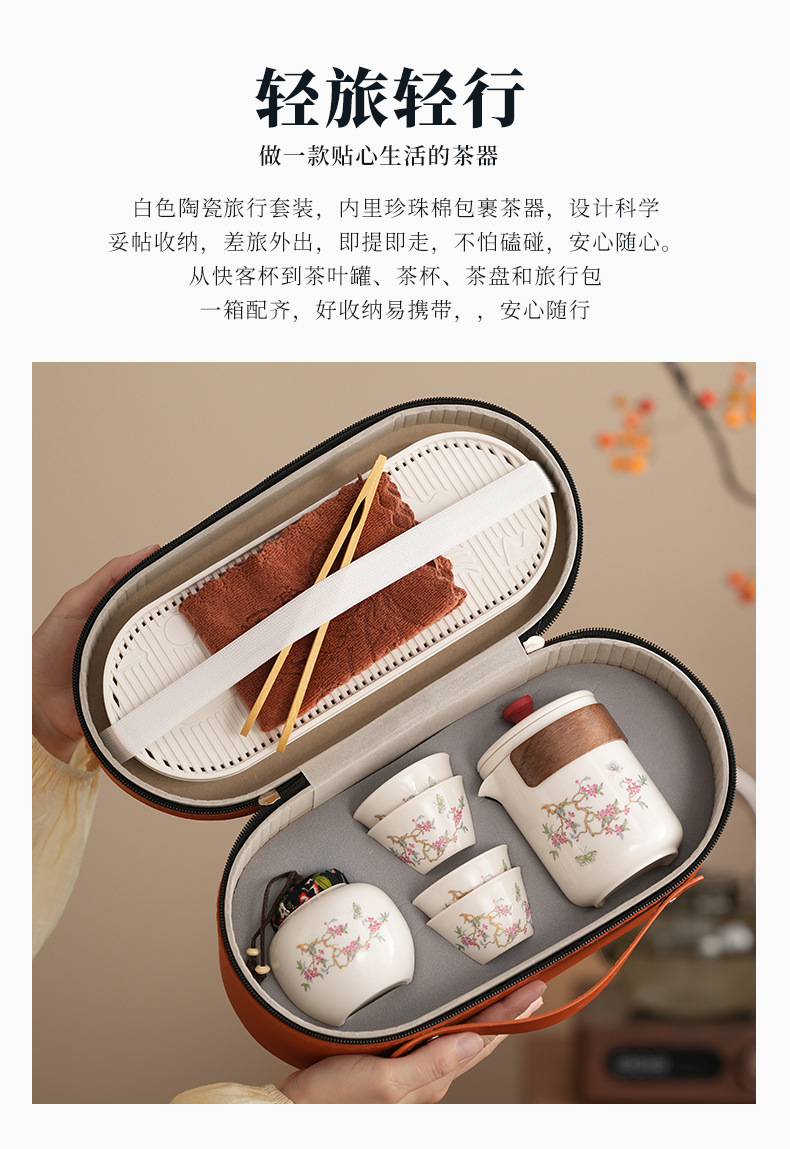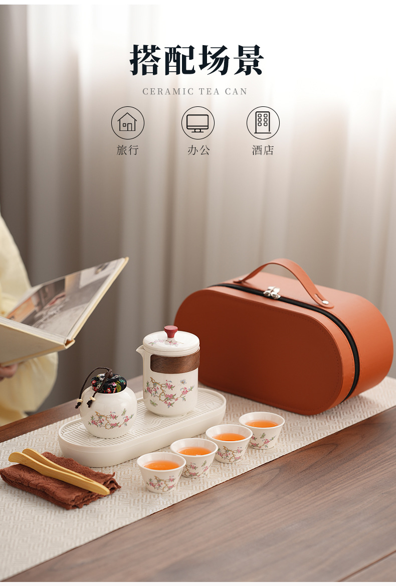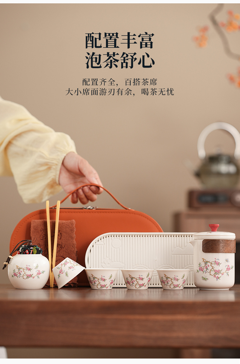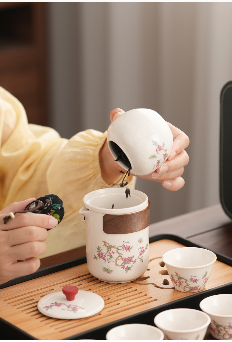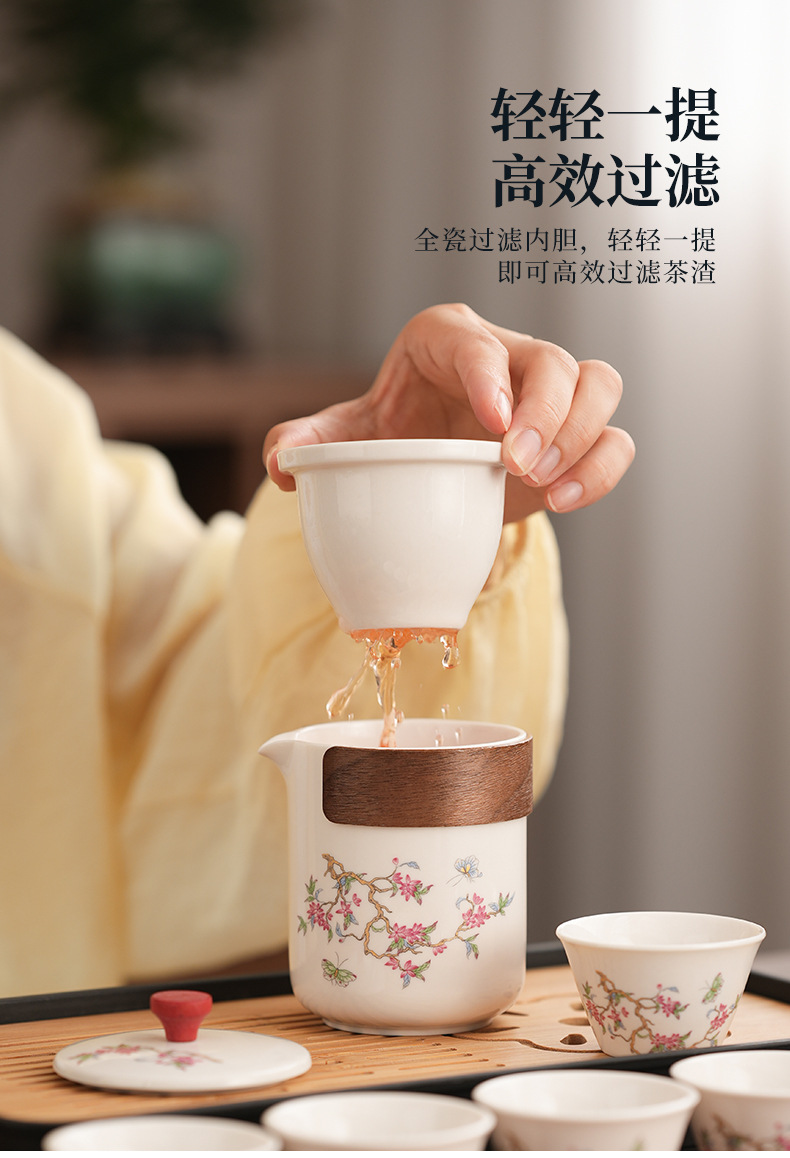 Набор для китайского чая в стиле кунг-фу, портативный, компактный, с цветком вистерии, для кемпинга на природе, быстрый заварной чайник, на заказ.