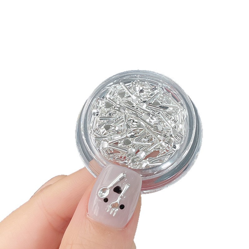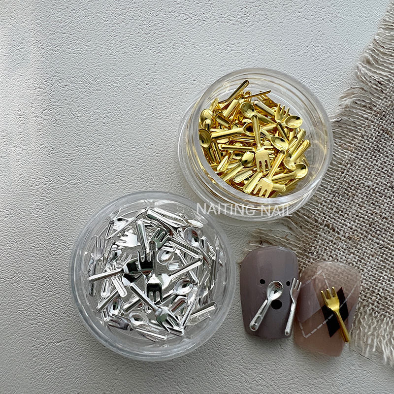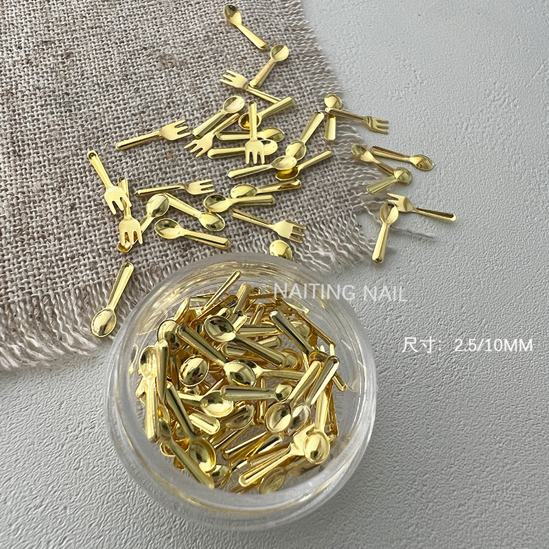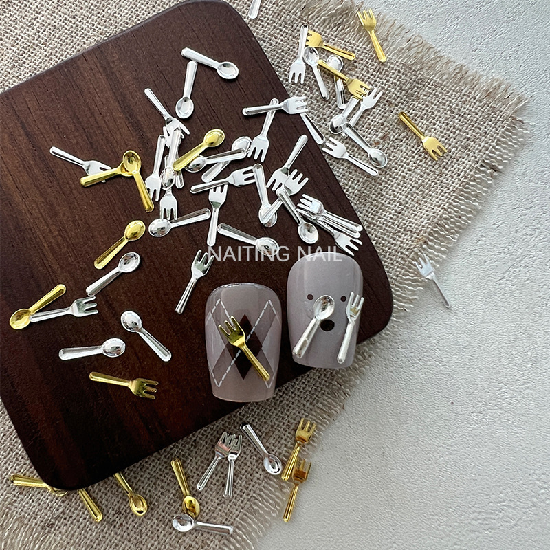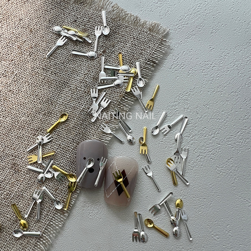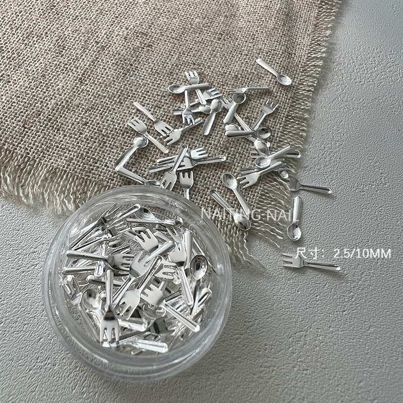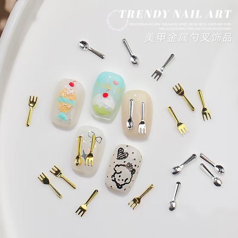 Миниатюрная металлическая вилка, маленькая ложка, аксессуары для нейл-арта, серия посуды в корейском стиле, нож и вилка для украшения ногтей.