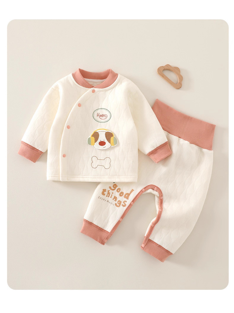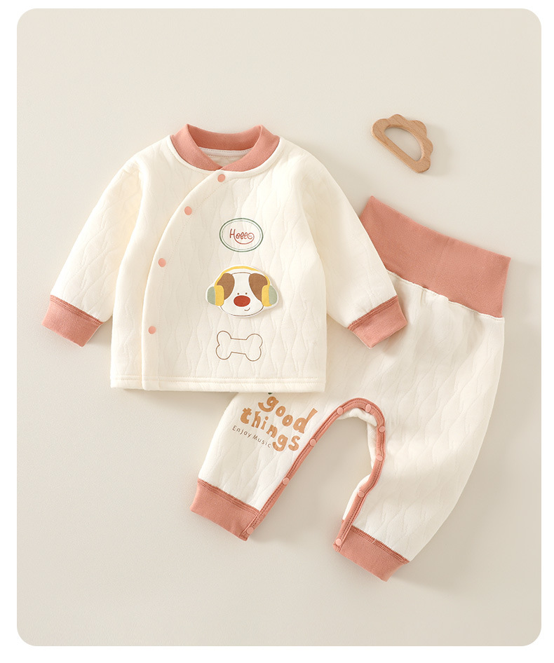 Детская одежда на четыре сезона, бесшовный базовый слой из чистого хлопка для новорожденных, осенний наряд на открытых пуговицах, комплект из двух предметов с высокой талией для мальчиков и девочек