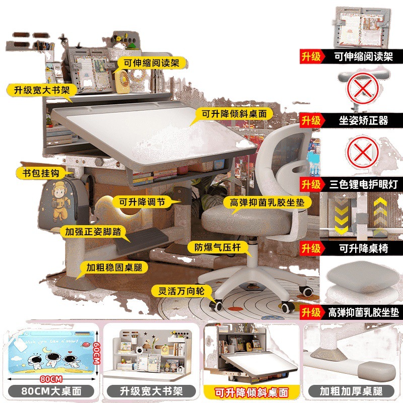 Набор для учебы, детский учебный стол, письменный стул, домашний письменный стол для учеников начальной школы, подъемный стол для коррекции сидячей осанки, дом