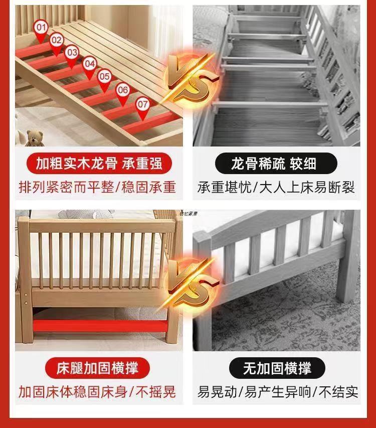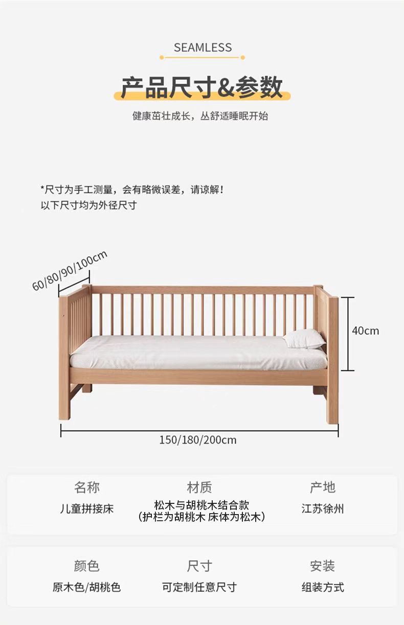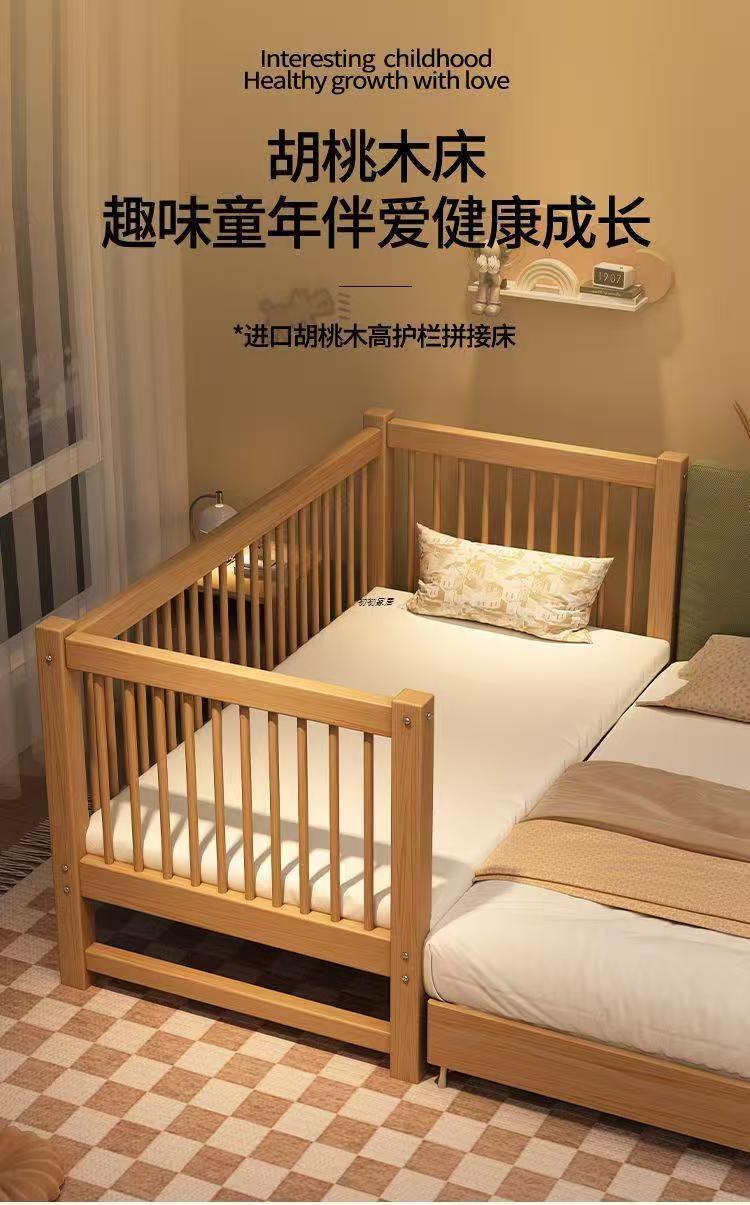 Кровать из орехового дерева, детская кровать из цельного дерева, расширенная детская кровать, утолщенная детская кровать
