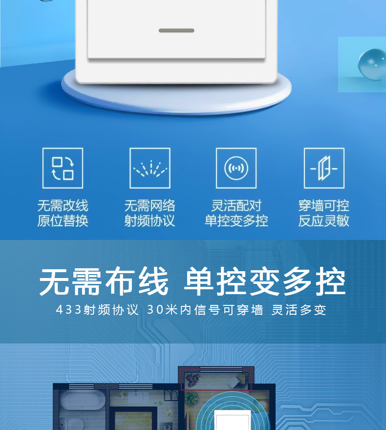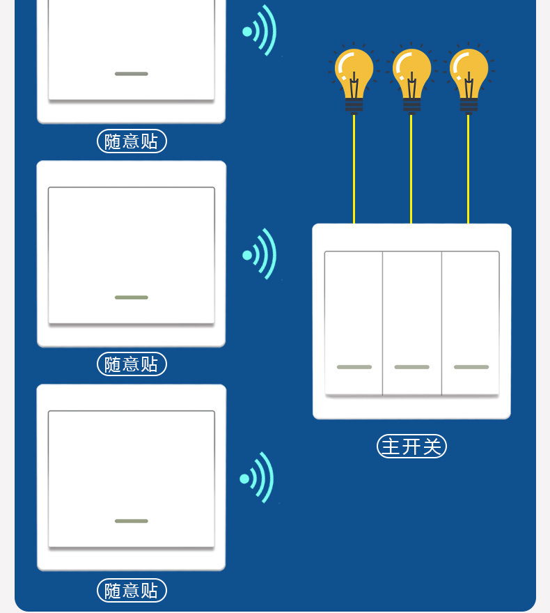 Беспроводная панель переключателей дистанционного управления, интеллектуальное освещение без проводов, бытовой двухзвенный двойной контроль, случайная наклейка