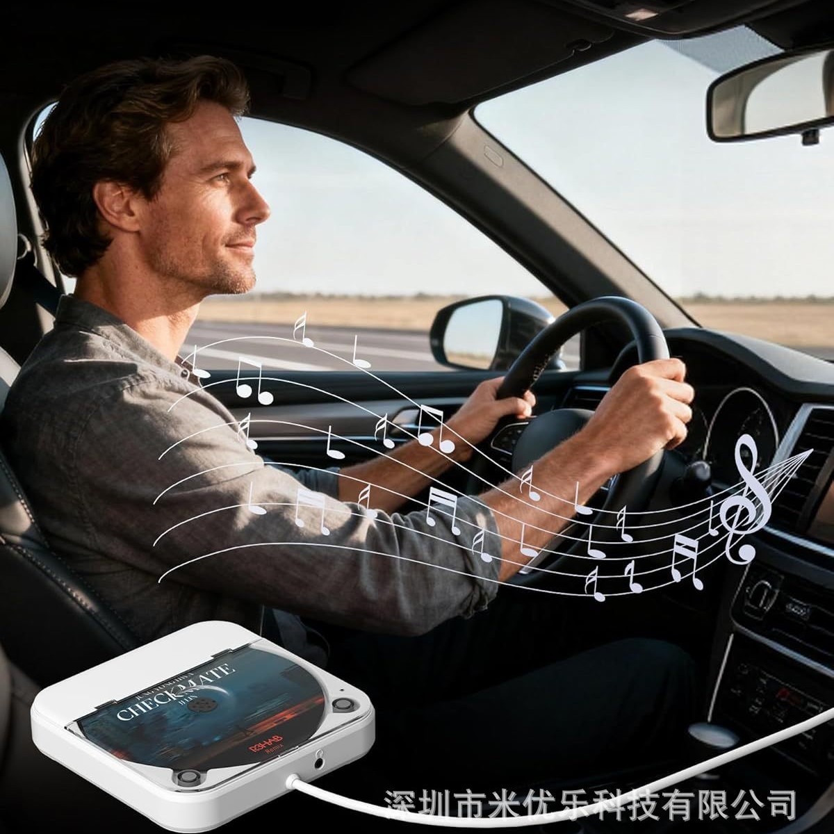 Белый автомобильный проигрыватель компакт-дисков (английская версия)