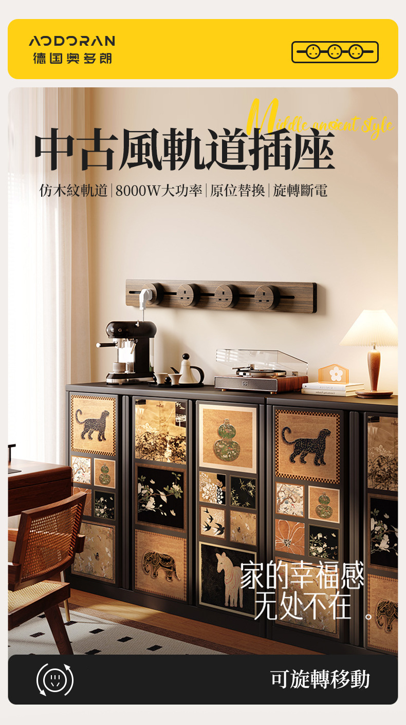 Ретро-розетка Odolan с текстурой дерева, съемная рельсовая розетка, разъемная раздвижная розетка для дома и кухни