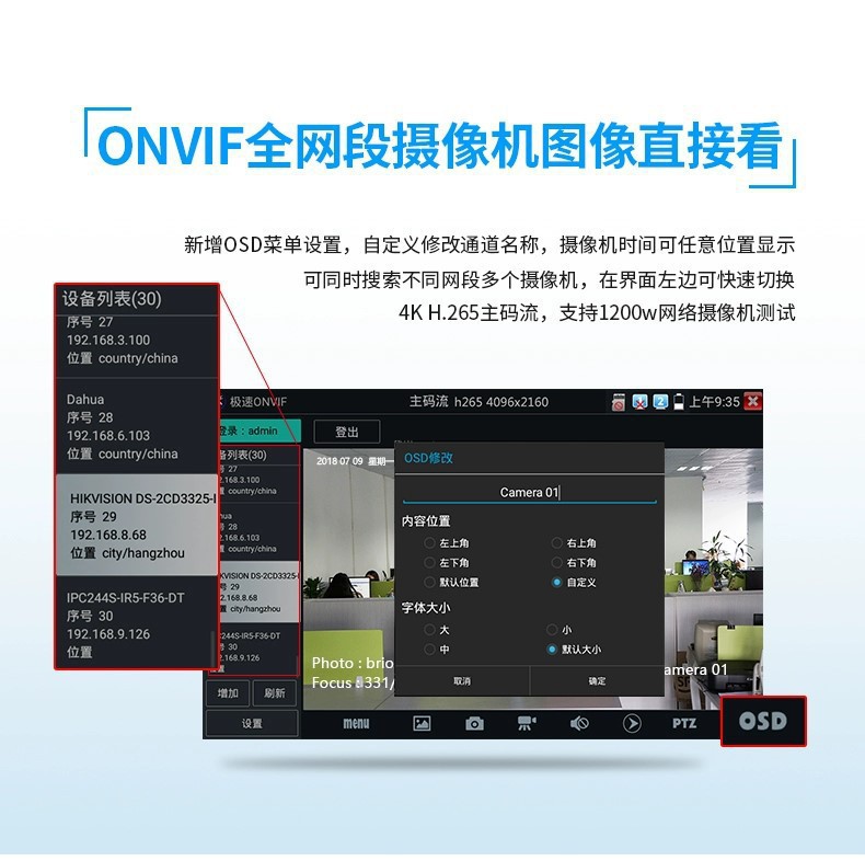 ● H.265/H.265+,4K主码流测试,1200W网络摄像机测试。