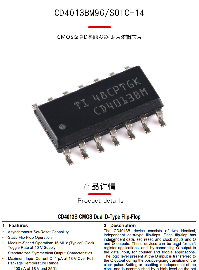 Оригинальный подлинный CD4013BM96 SOIC-14 CMOS двойной класс D триггер патч логический чип