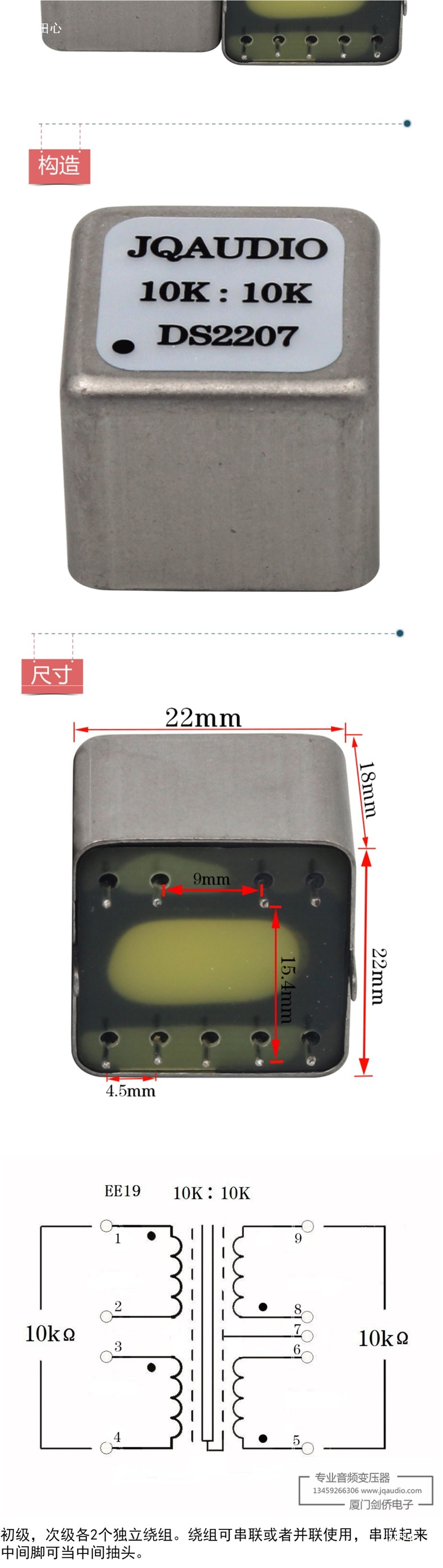 10K:10K Аудиоизолирующий трансформатор из пермаллоя, сбалансированный и несбалансированный аудиоизолятор