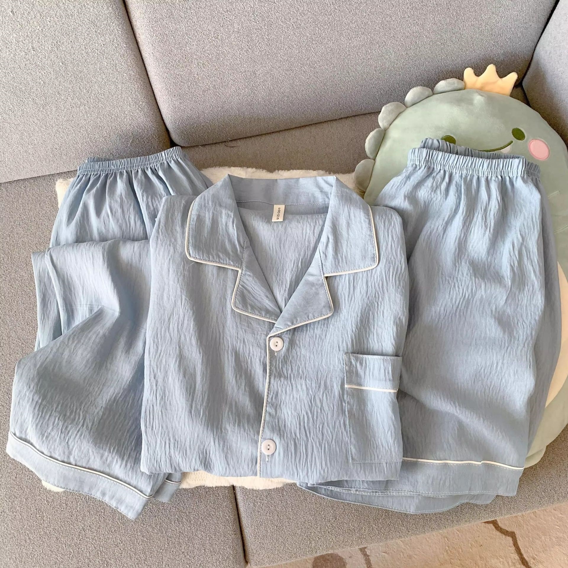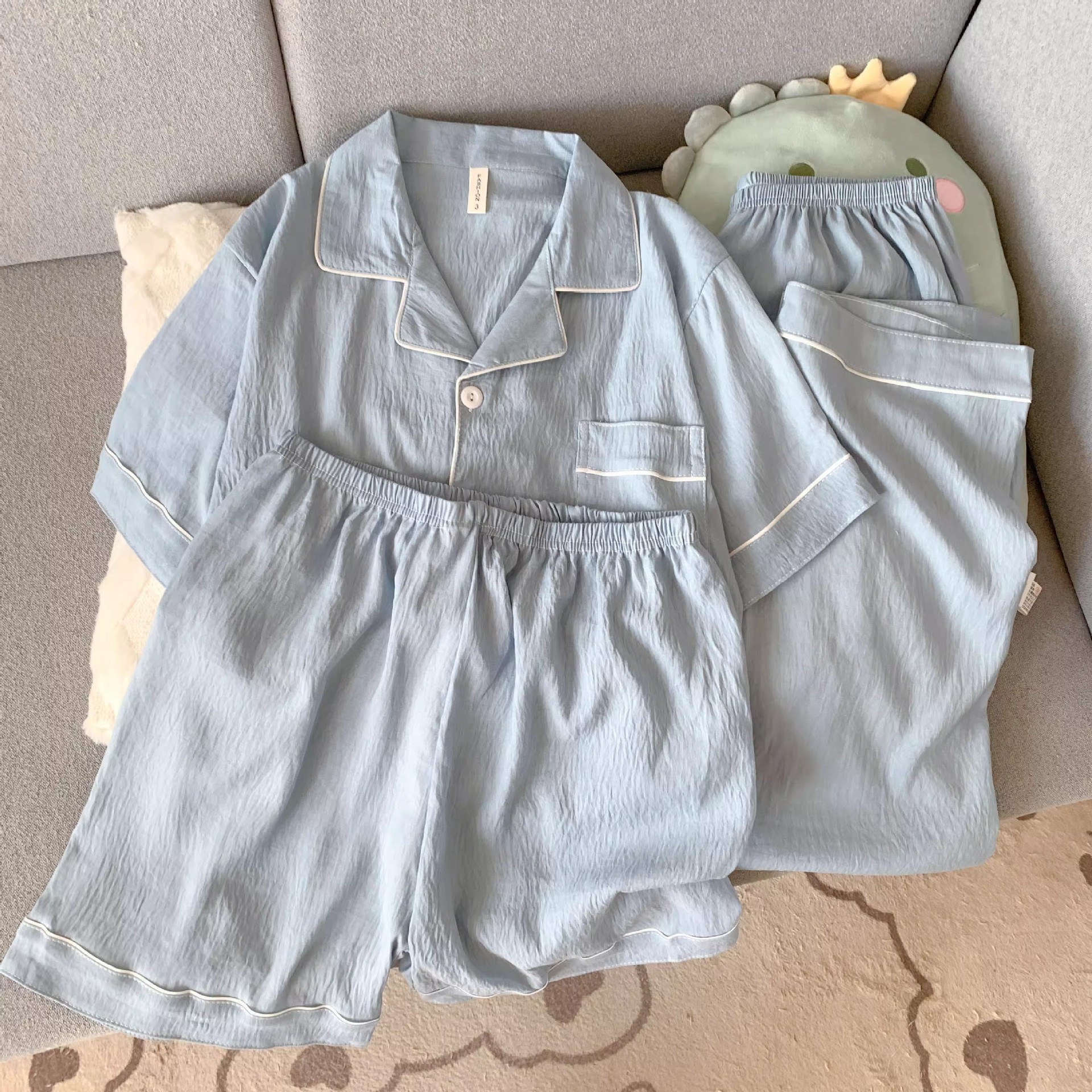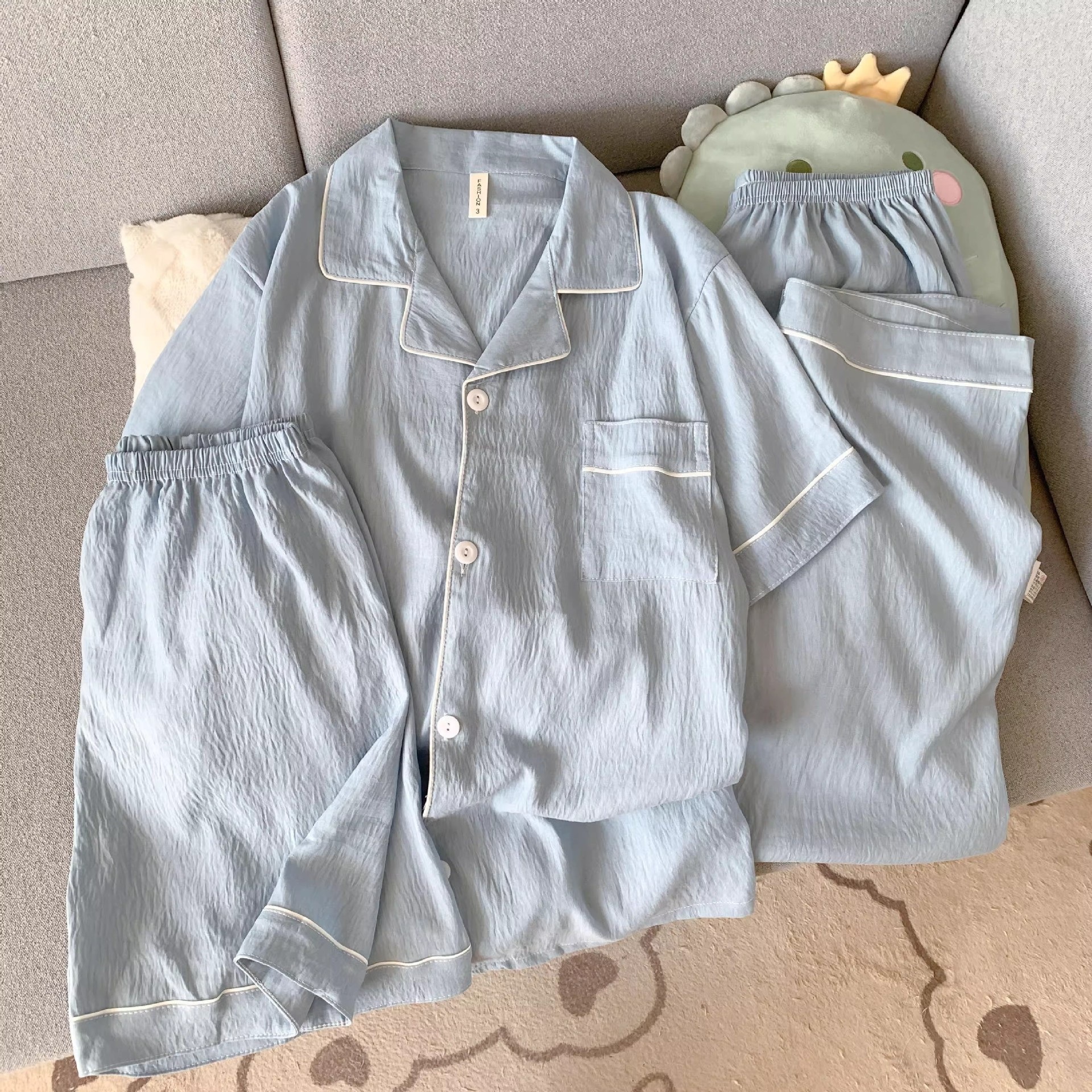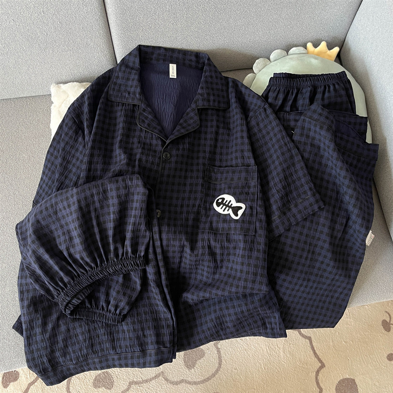 Летние мужские пижамы, милые облака из рыбьей кости, хлопчатобумажные марлевые шорты с короткими рукавами и брюки, простой и удобный комплект домашней одежды из трех предметов.