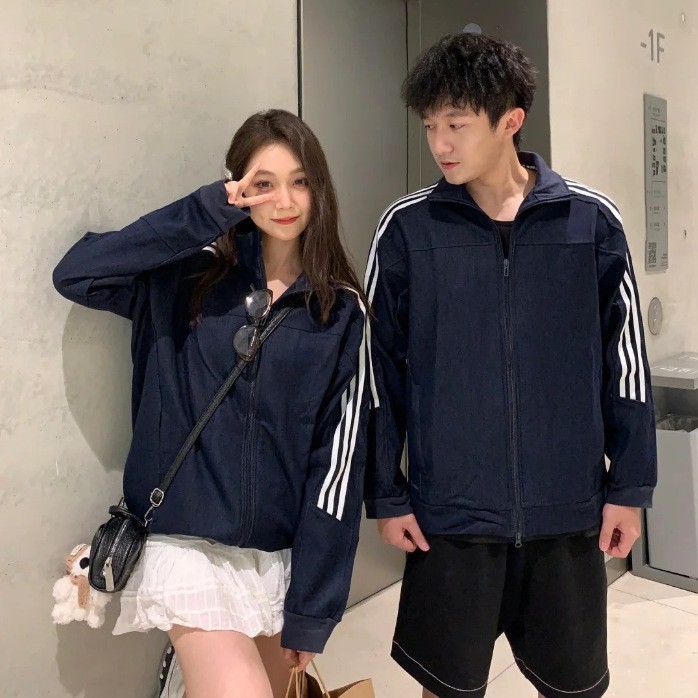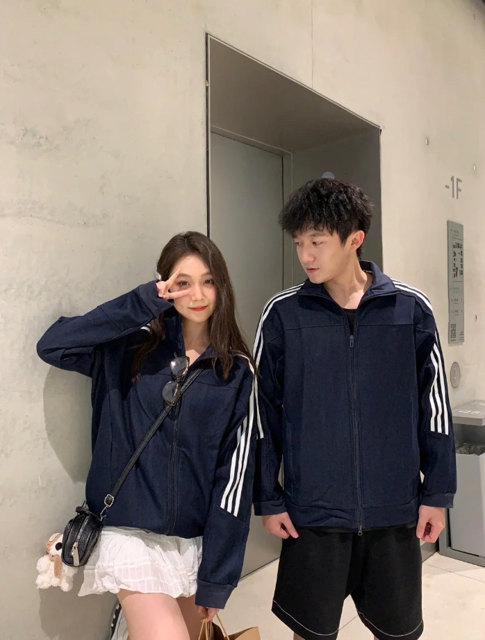 Три полоски, экспортная весенне-осенняя ветровка в полоску для пар, повседневная куртка, спортивная куртка, мужские и женские топы 9952 с вышивкой