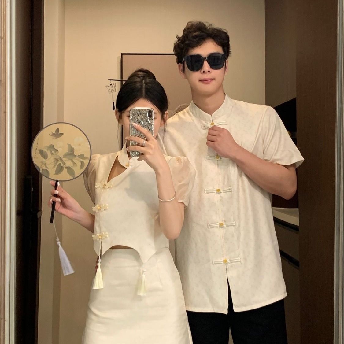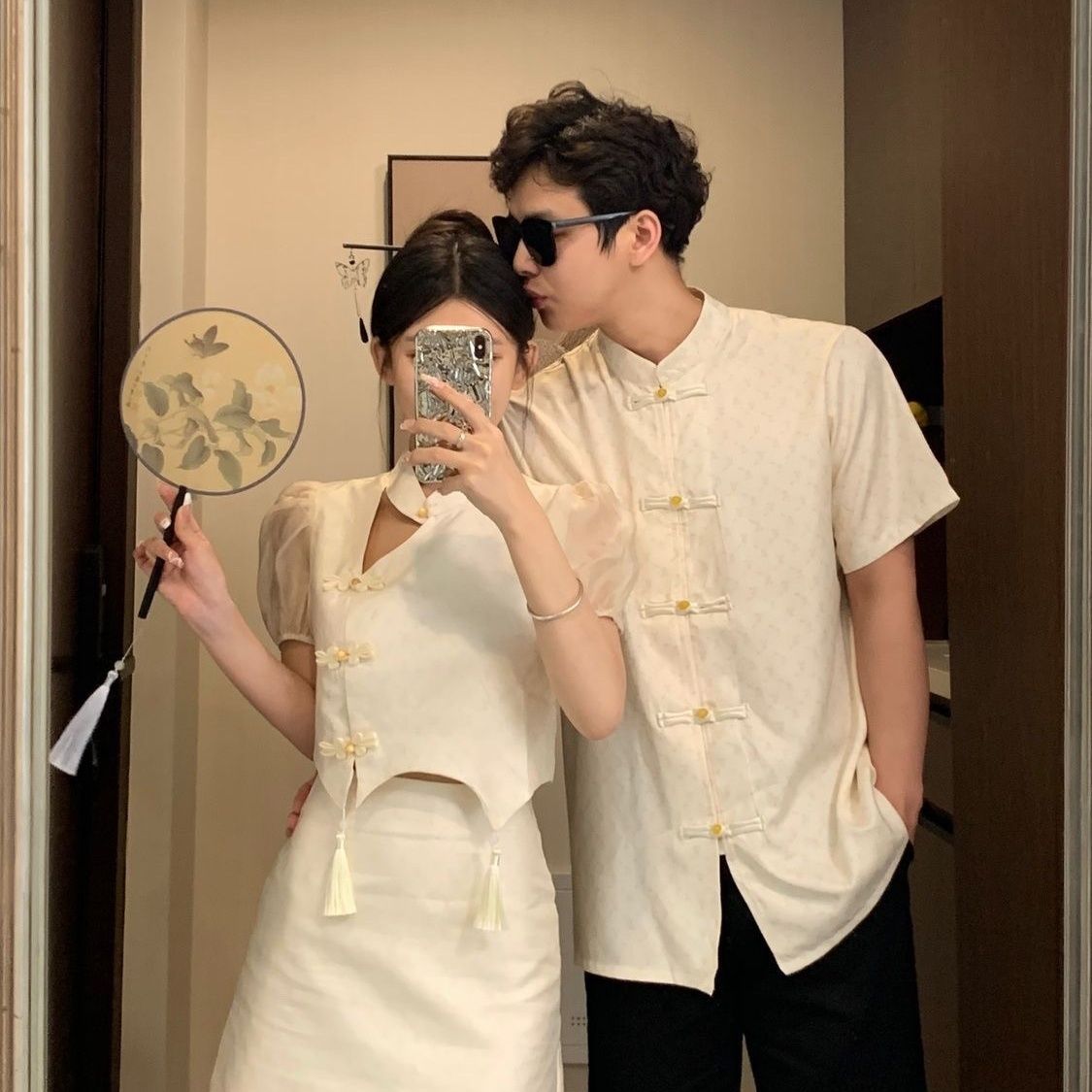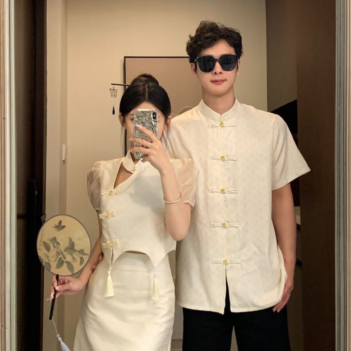 Новый китайский стиль парный комплект лето 2025 новый костюм короткий рукав рубашка китайский стиль двухсоставной комплект одна юбка чонсам юбка