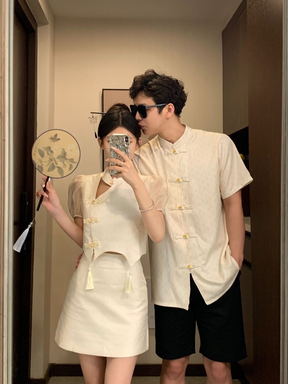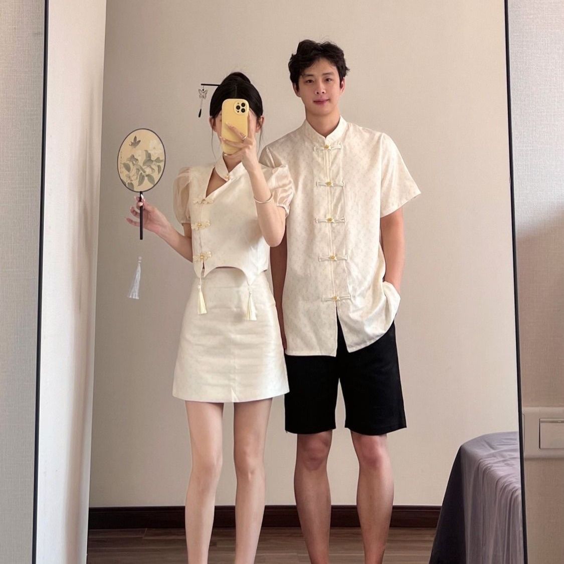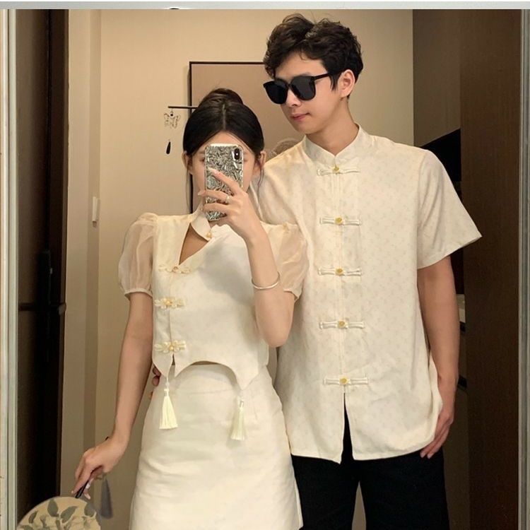 Новый китайский стиль парный комплект лето 2025 новый костюм короткий рукав рубашка китайский стиль двухсоставной комплект одна юбка чонсам юбка