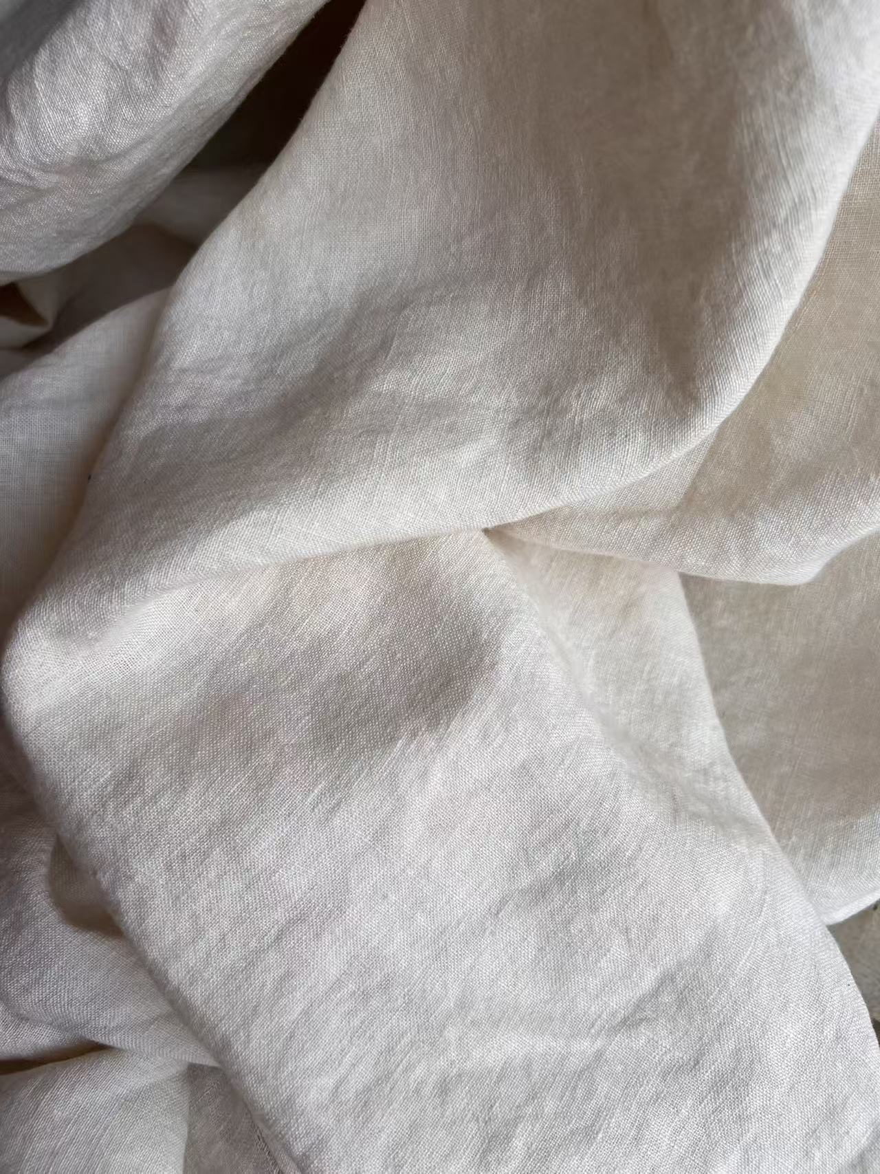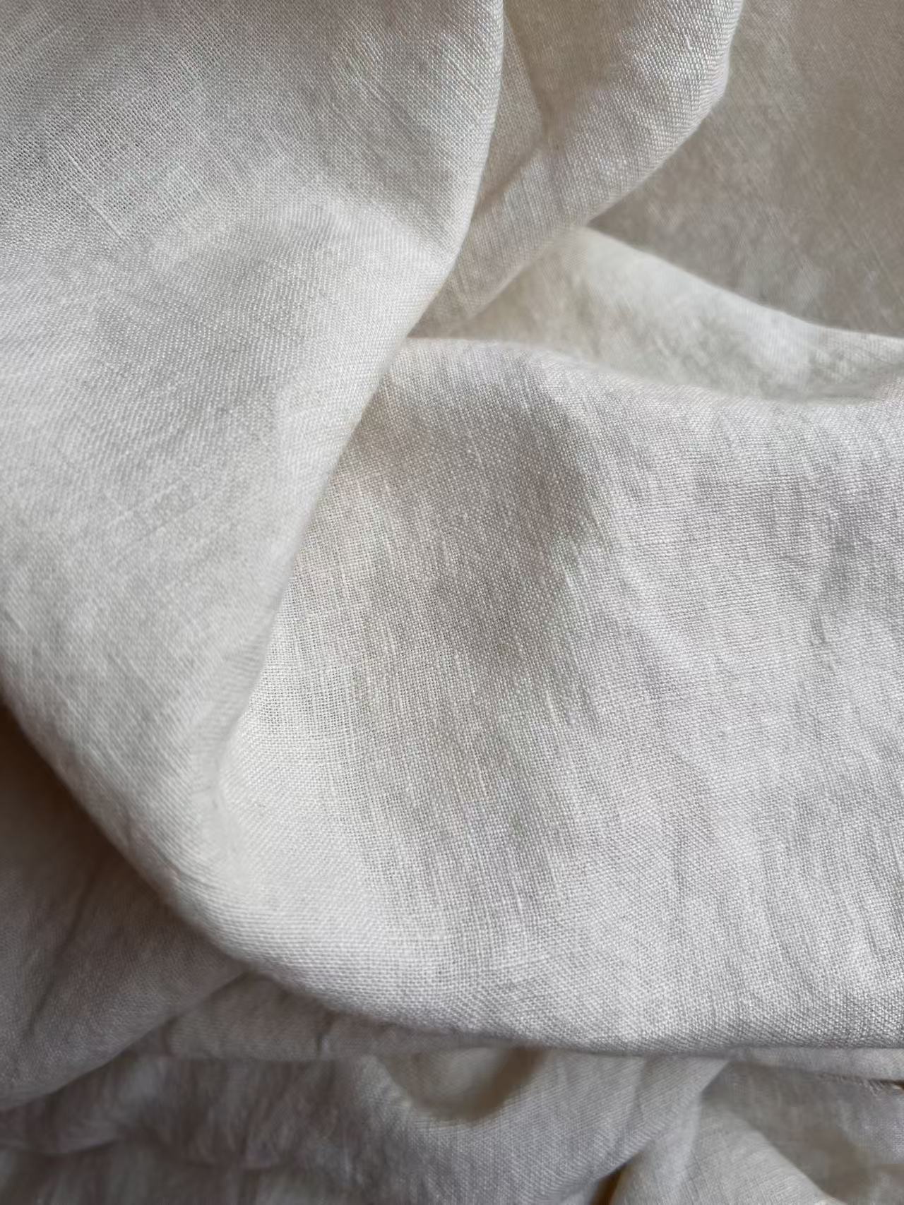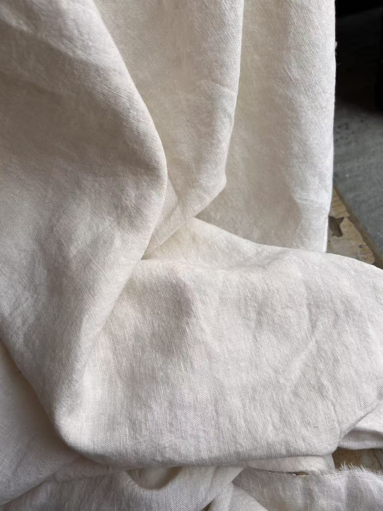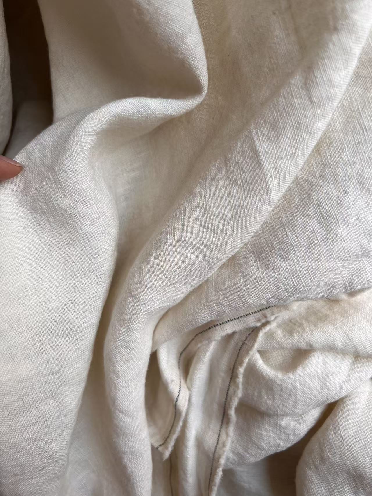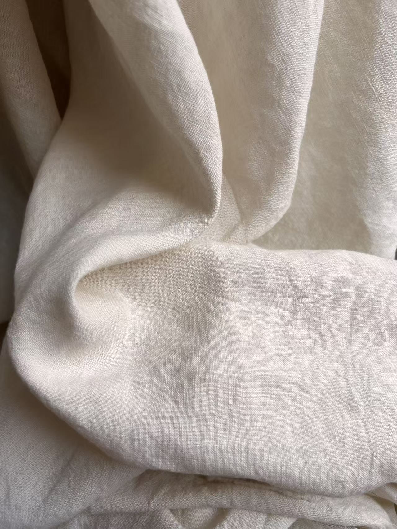 Бежевая песочно-мойная ткань из плотного хлопкового льна с текстурой, подходящая для халатов, брюк, чехлов для диванов и штор.