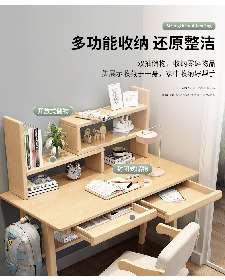 СМ888-109 # Книжная полка, обновленный стол и стул из цельного дерева, комбинация домашнего простого детского учебного стола с ремнем