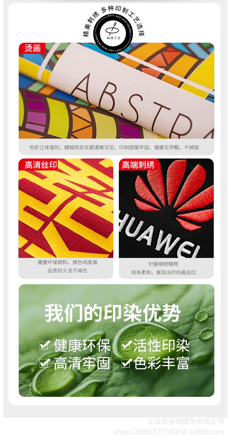 有高清数码热转印、传统丝印、高精度丝印、电脑刺绣等定制工艺可选