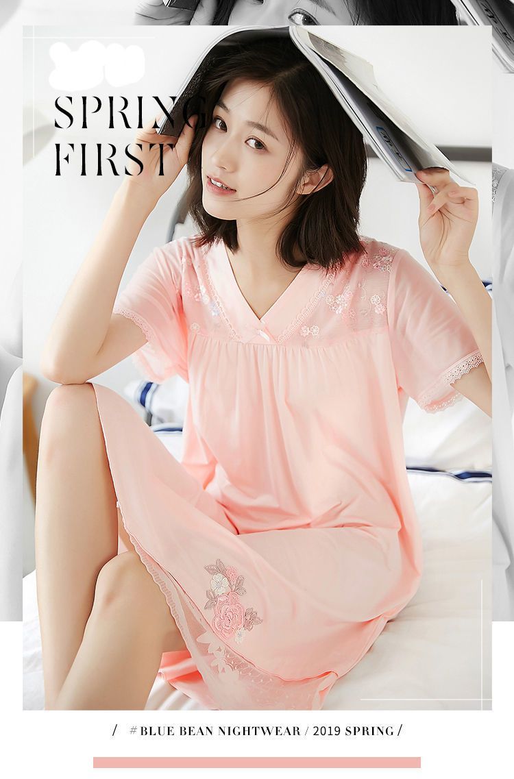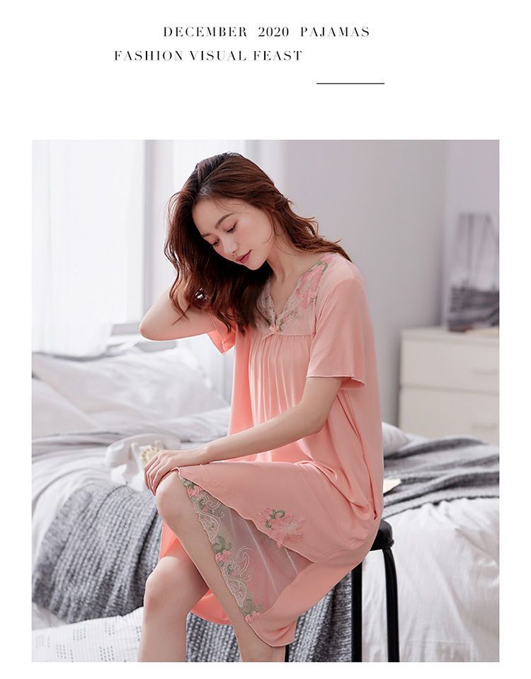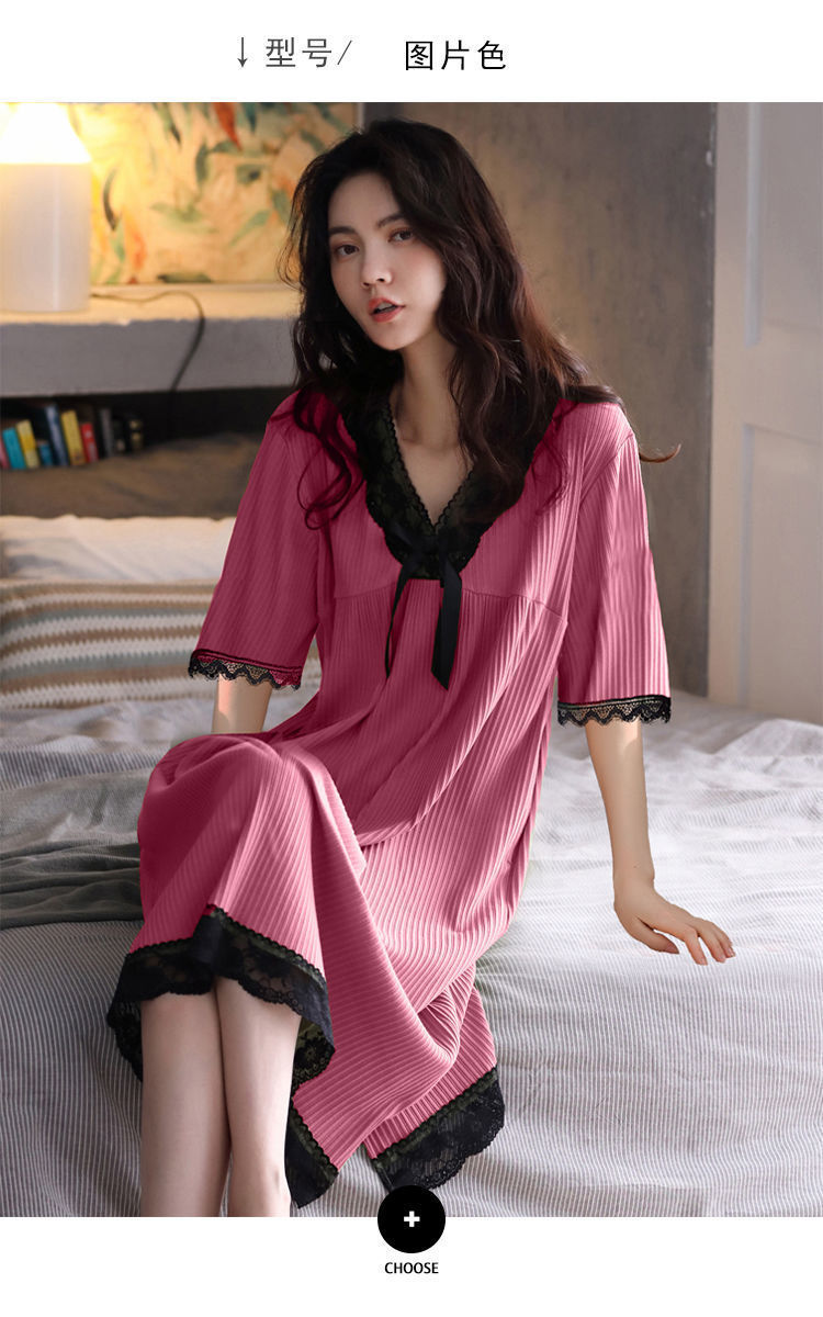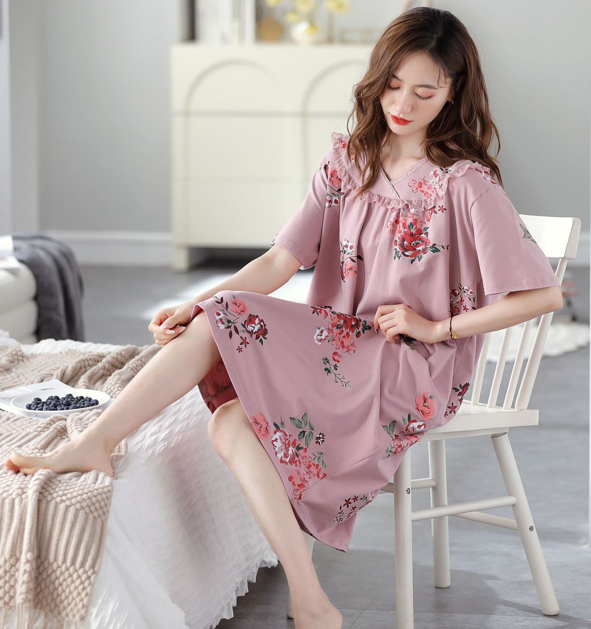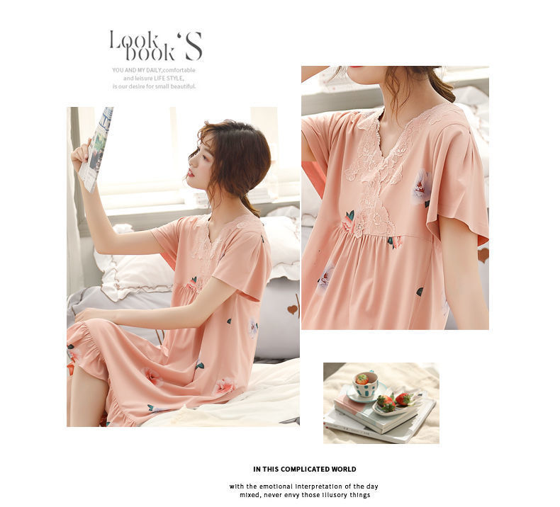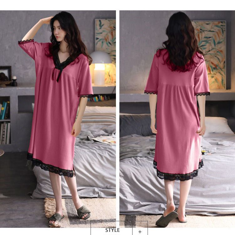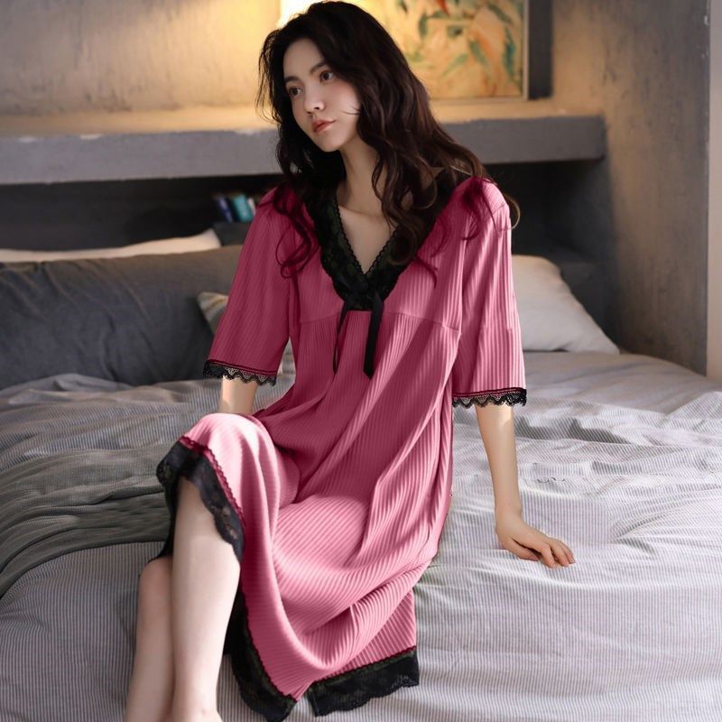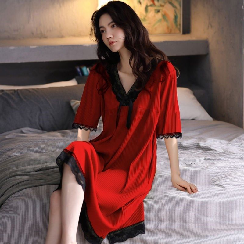 Модальная ночная рубашка, женская летняя сексуальная пижама из чистого хлопка, женская весенне-осенняя длинная до колена, свободная красная домашняя одежда большого размера