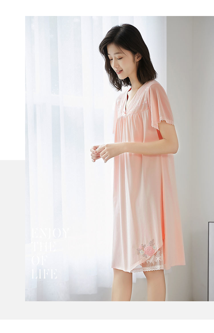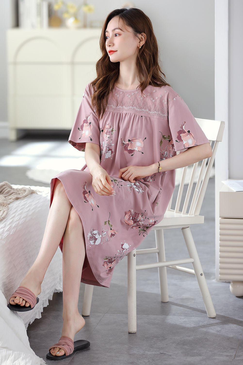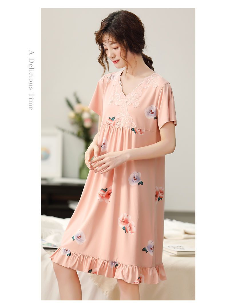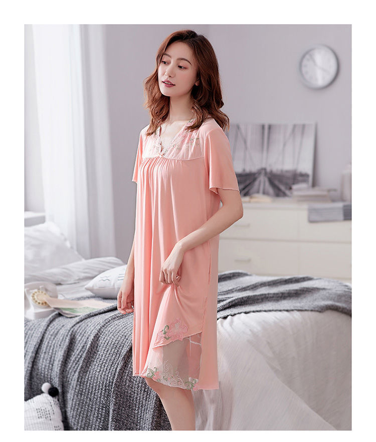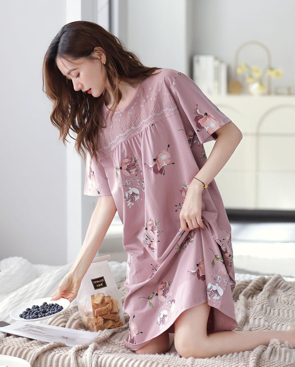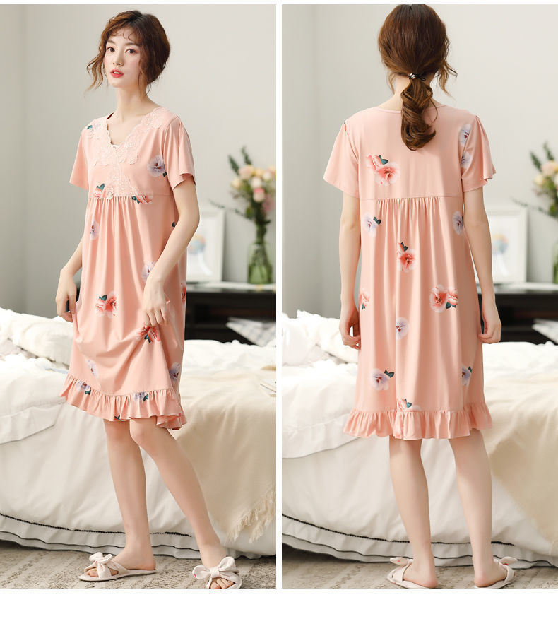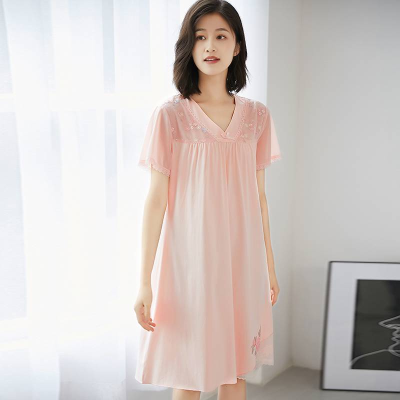 Модальная ночная рубашка, женская летняя сексуальная пижама из чистого хлопка, женская весенне-осенняя длинная до колена, свободная красная домашняя одежда большого размера