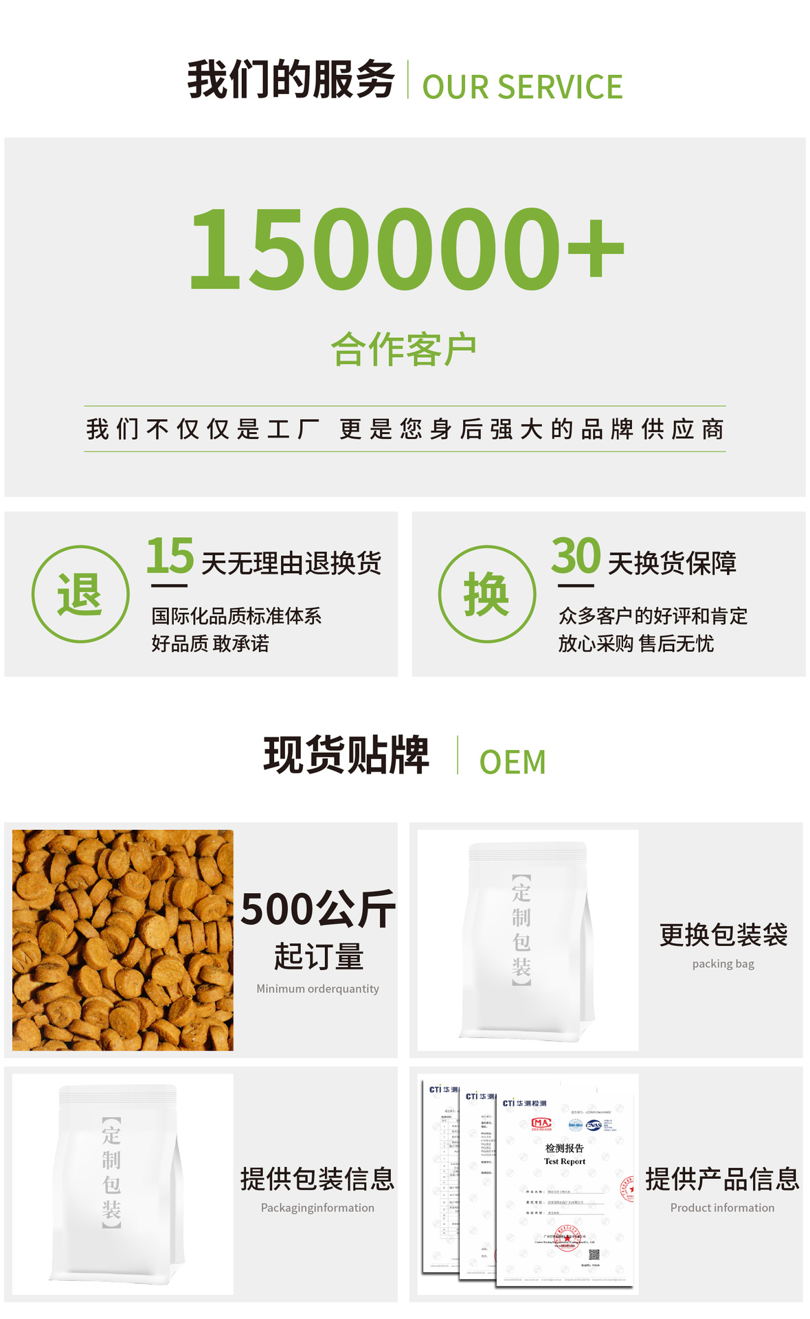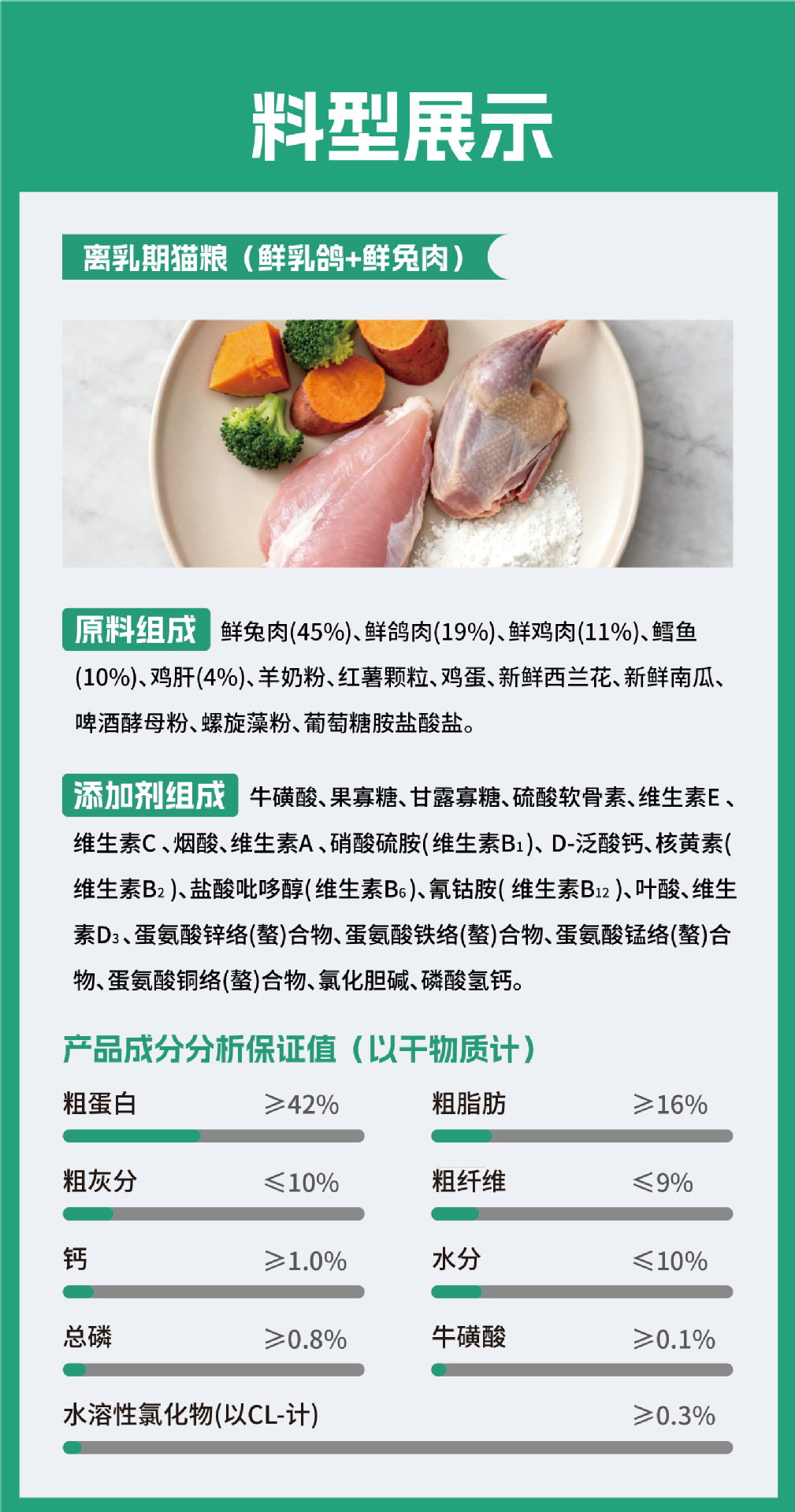 Корм для отлучения от груди (свежий голубь + свежее мясо кролика); Корм для котят с молочным пирожным (свежее мясо голубя); Корм для кошек "Молочный торт" полной ценности (без свежего мяса + лосось); Хэншэн полноценный корм для кошек с полным сроком годности (без свежего мяса); OEM/ODM кастомизация (пожалуйста, обратитесь в службу поддержки для уточнения деталей).