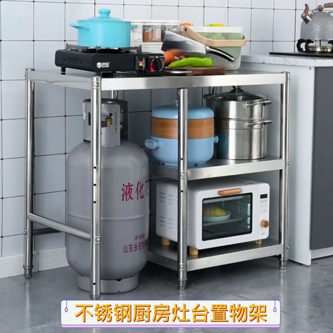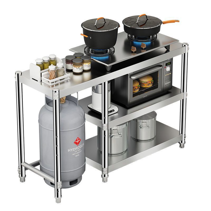 Кухонная полка для хранения из нержавеющей стали, напольная многослойная газовая плита, стеллаж для хранения газовой плиты, газовый бак, стойка для плиты