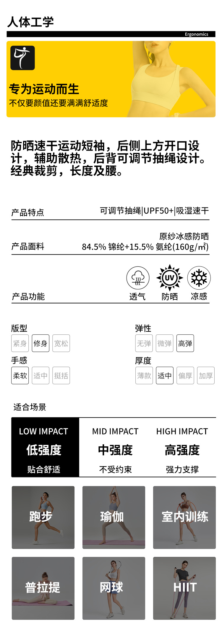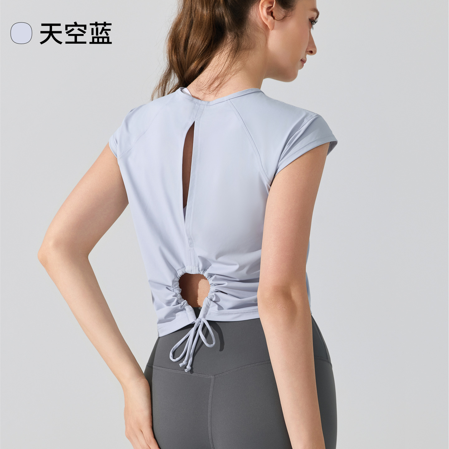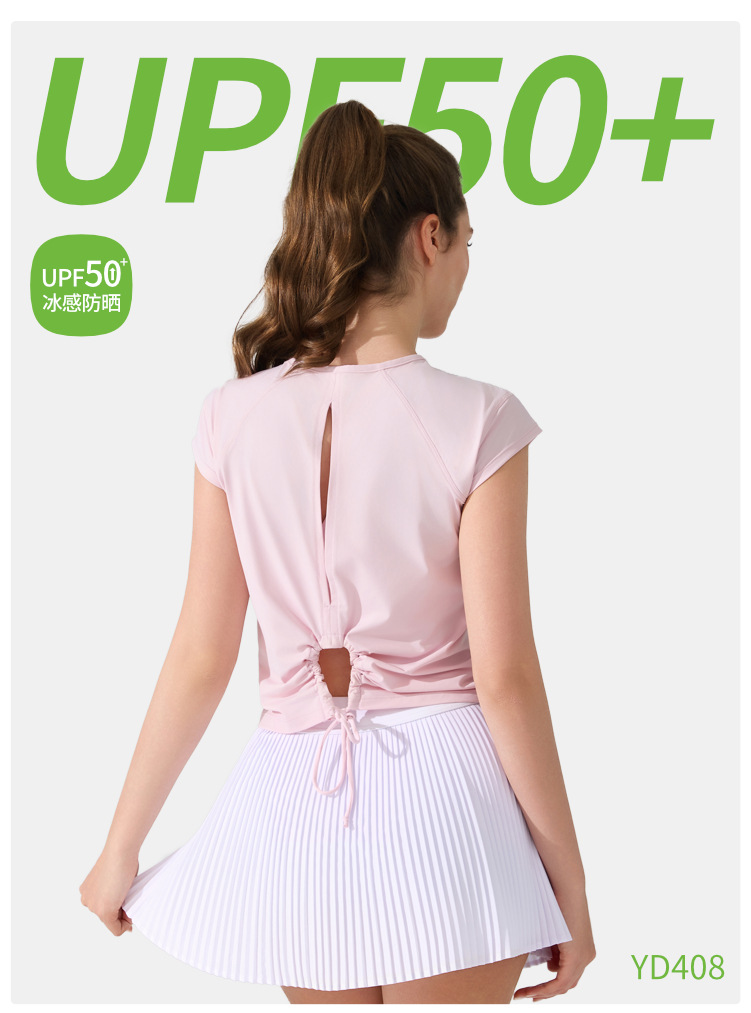 Оригинальная красивая футболка с короткими рукавами из пряжи, крутая дышащая одежда для бега с вырезами, спортивная одежда для фитнеса, йоги, топ, женская защита от солнца UPF50