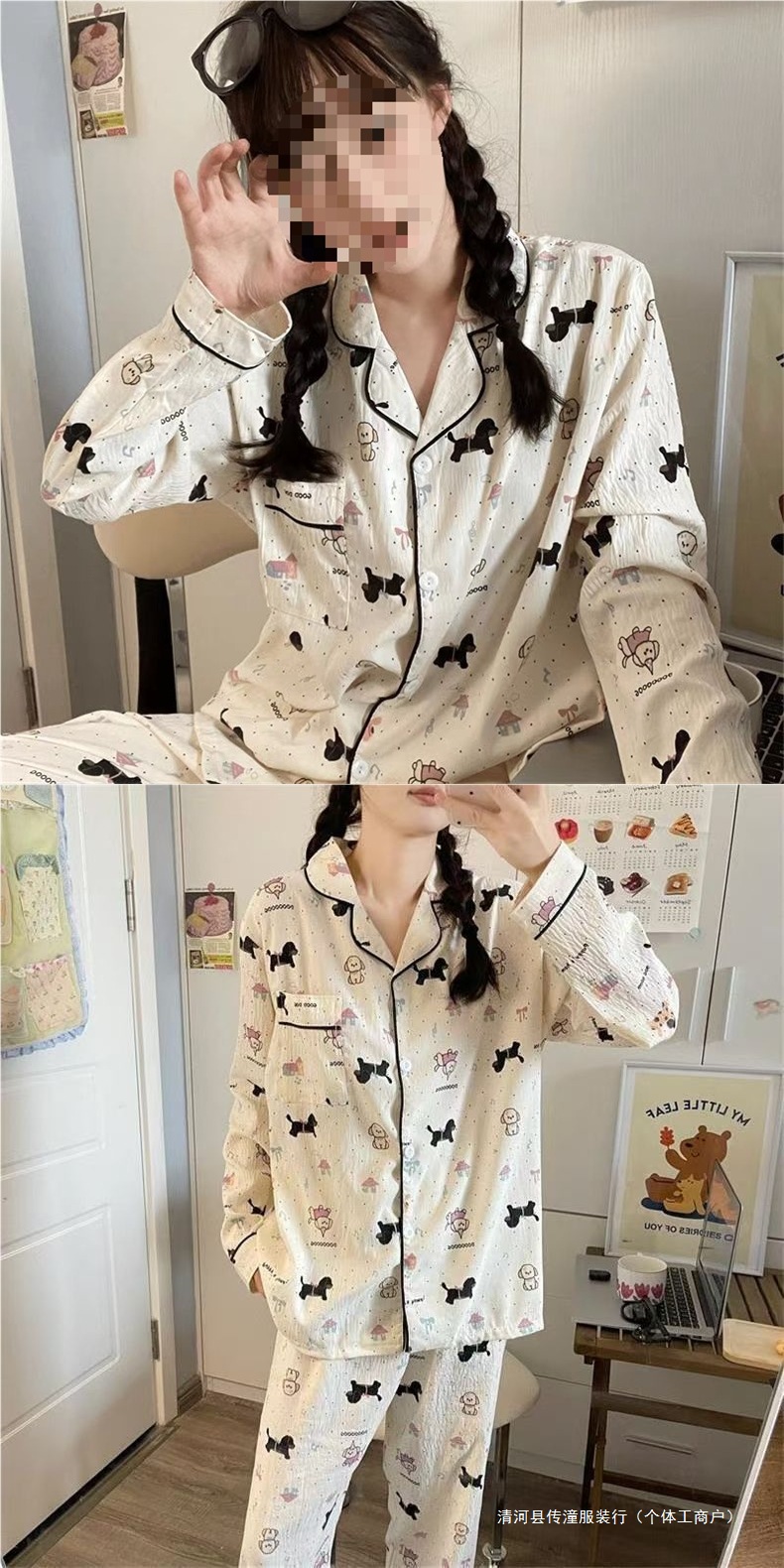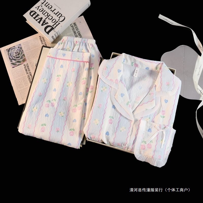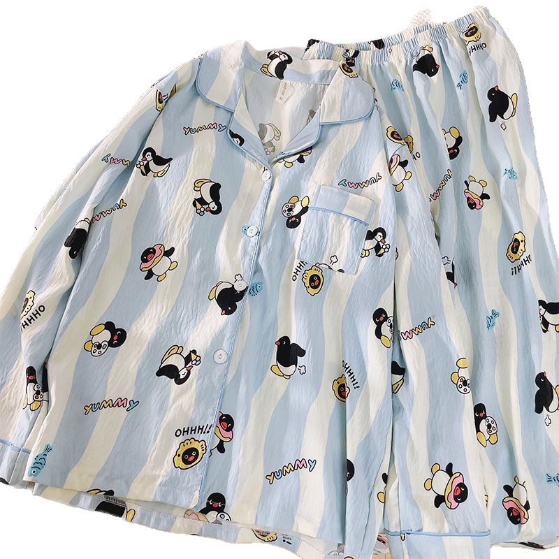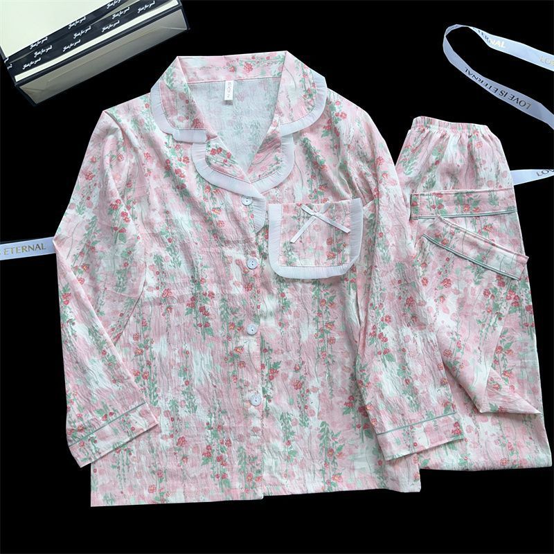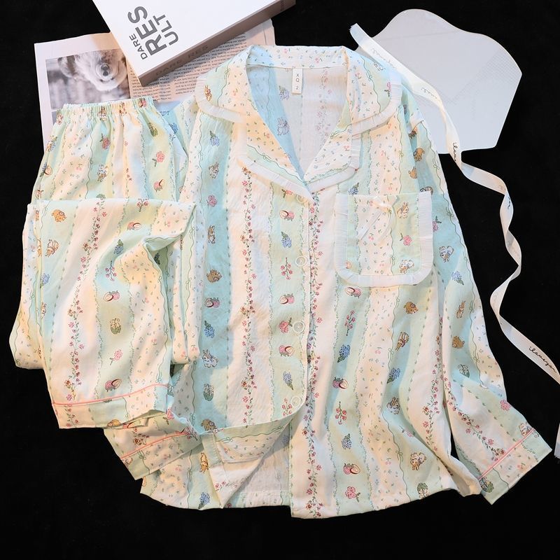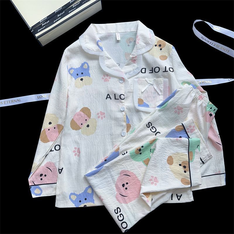 Хлопковые пижамы Yunduo для женщин весной и осенью, новые брюки с длинными рукавами, милые и милые, можно носить поверх кардигана, домашняя одежда, комплект из двух предметов