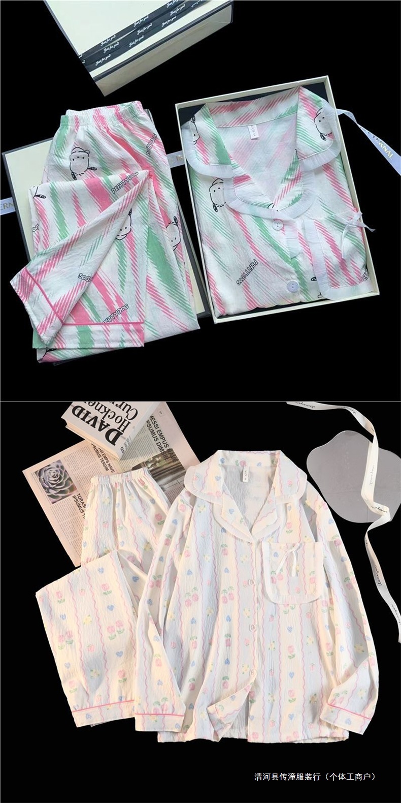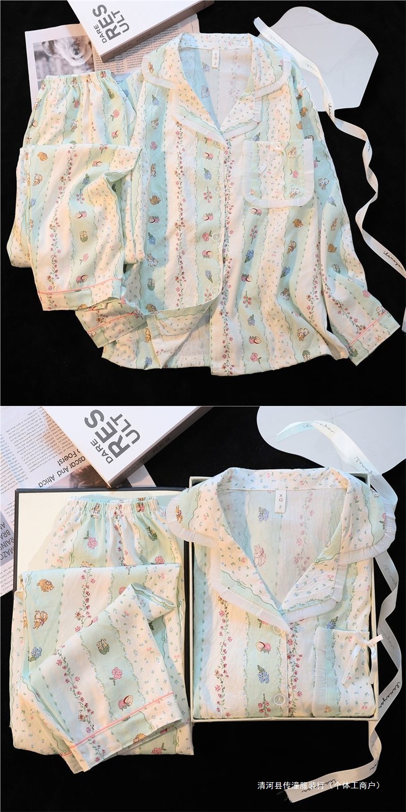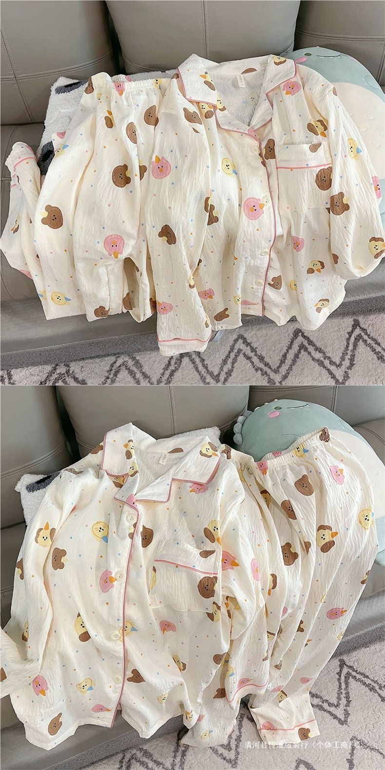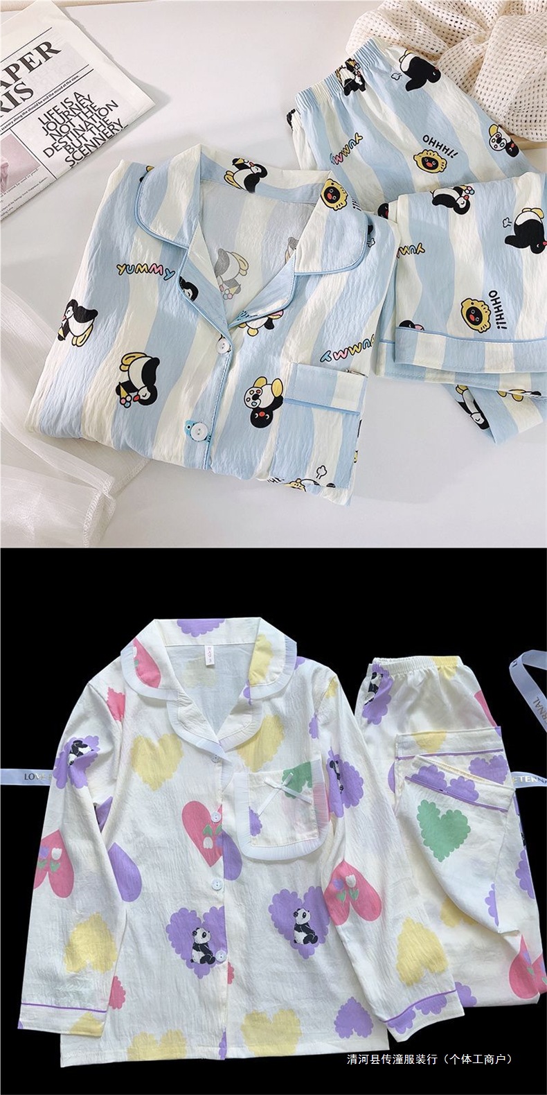 Хлопковые пижамы Yunduo для женщин весной и осенью, новые брюки с длинными рукавами, милые и милые, можно носить поверх кардигана, домашняя одежда, комплект из двух предметов