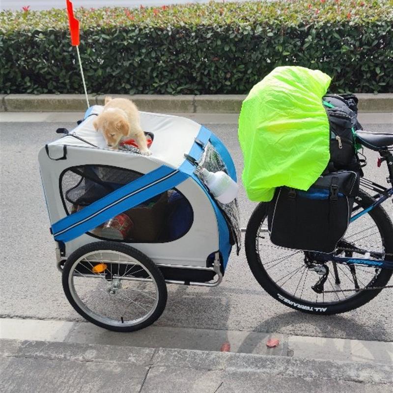 Задний велоприцеп для багажа с собакой, велоприцеп для животных на открытом воздухе.
