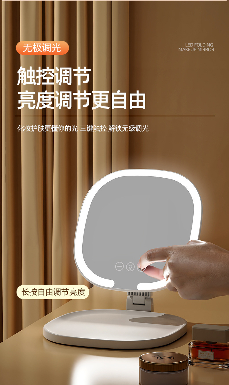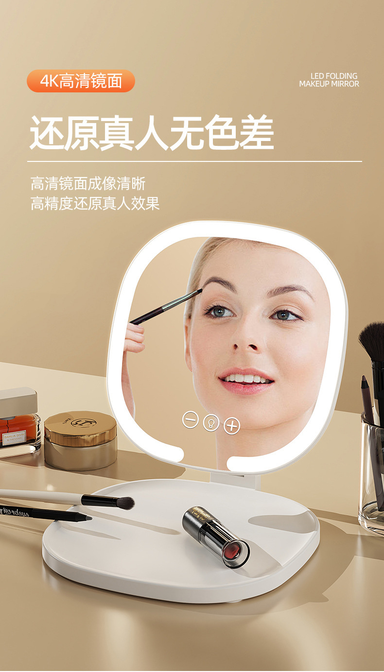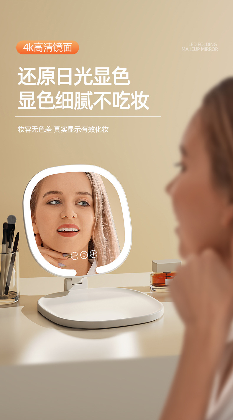 Светодиодное зеркало для макияжа для девочек с подсветкой, складное портативное зеркало для макияжа с подсветкой, настольное зеркало для макияжа для общежития, настольное офисное зеркало для макияжа