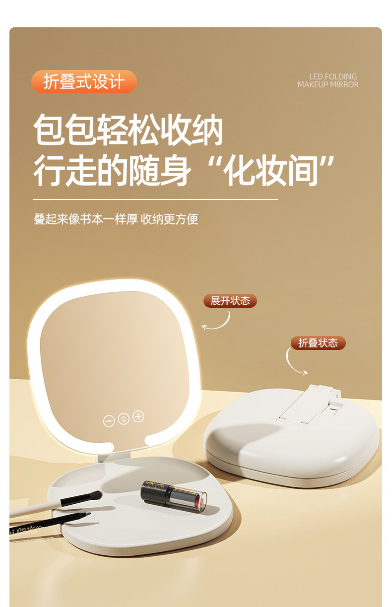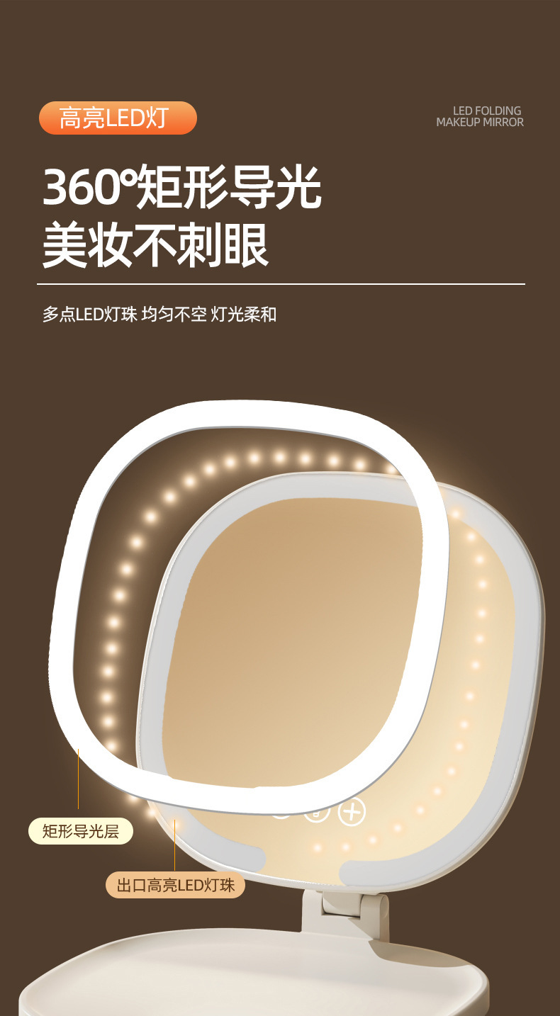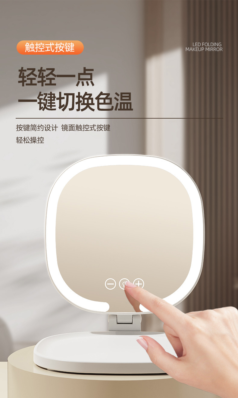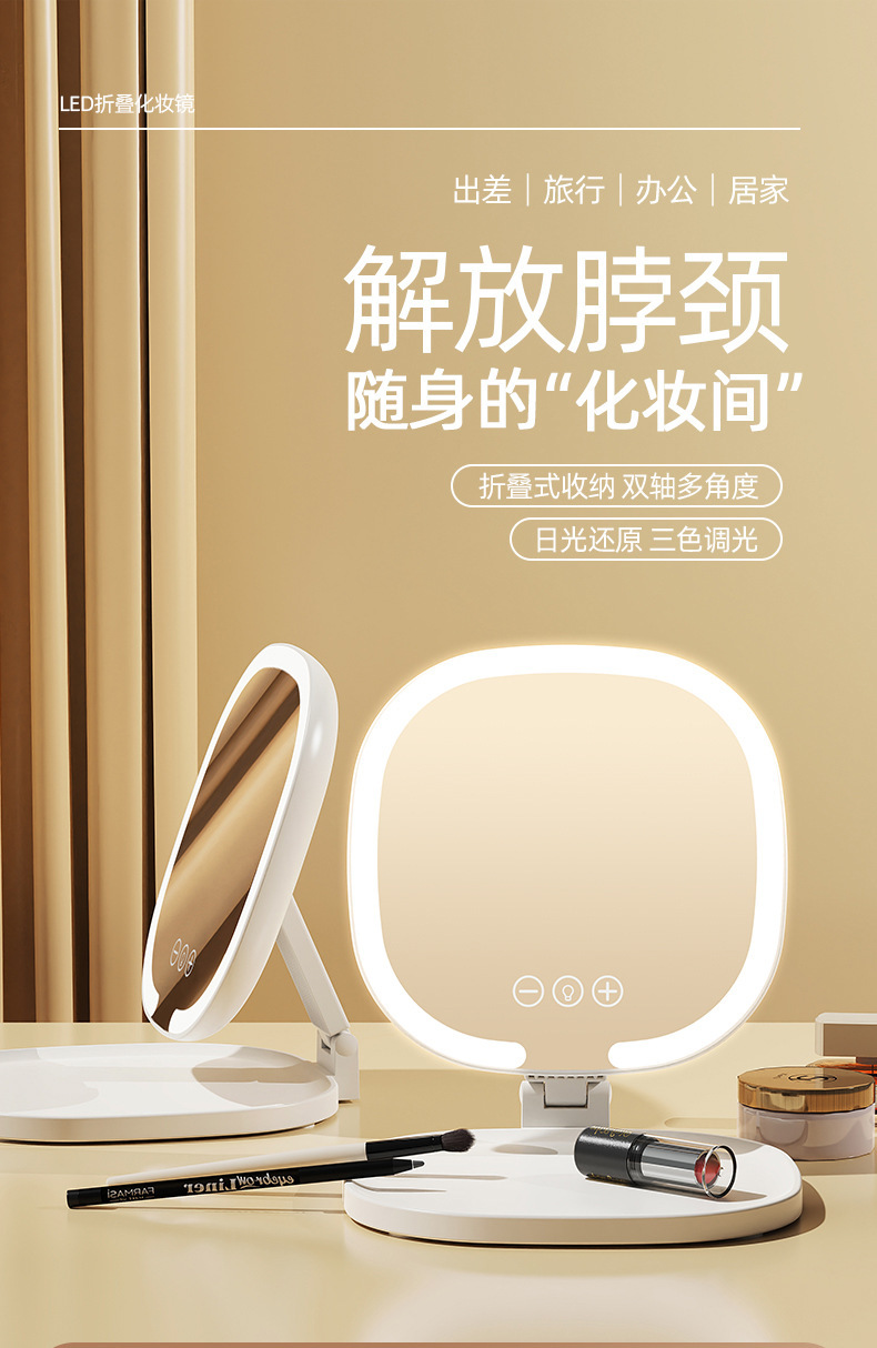 Светодиодное зеркало для макияжа для девочек с подсветкой, складное портативное зеркало для макияжа с подсветкой, настольное зеркало для макияжа для общежития, настольное офисное зеркало для макияжа