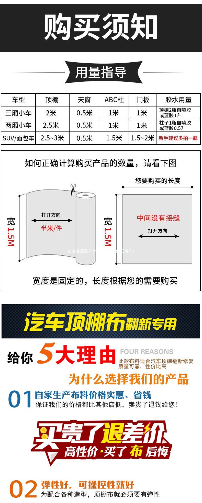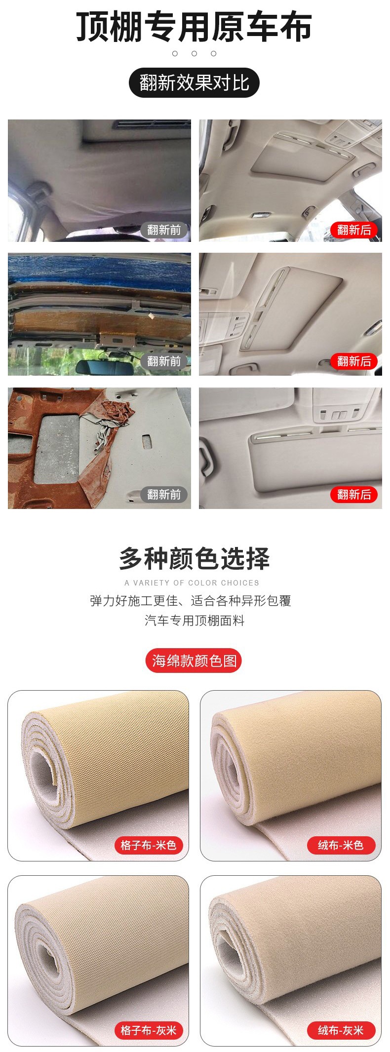 Автомобильная потолочная ткань, самоклеящаяся оригинальная автомобильная ткань с губкой, модификация интерьера, ремонт крыши автомобиля, замена потолка, отваливающийся потолок Guanqin