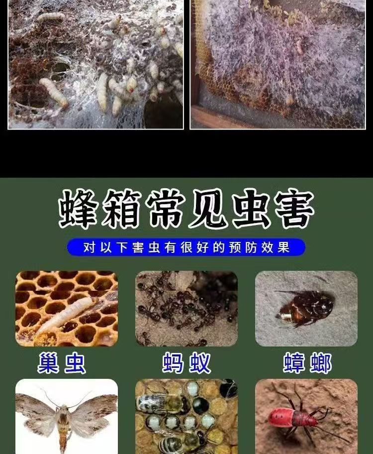 Специальная лекарственная смесь для пчел для уничтожения гнездовых вредителей, вредителей хлопка и белоголовых личинок; лечить ульи, удалять пчел, убивать клещей и использовать древесную щепу для пчел.