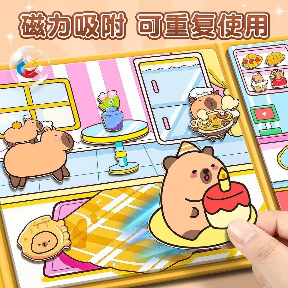 Магнитная тихая книга, новая модель для девочек, вырезка без магнитов, детская магнитная наклейка «сделай сам», наряд капибары.