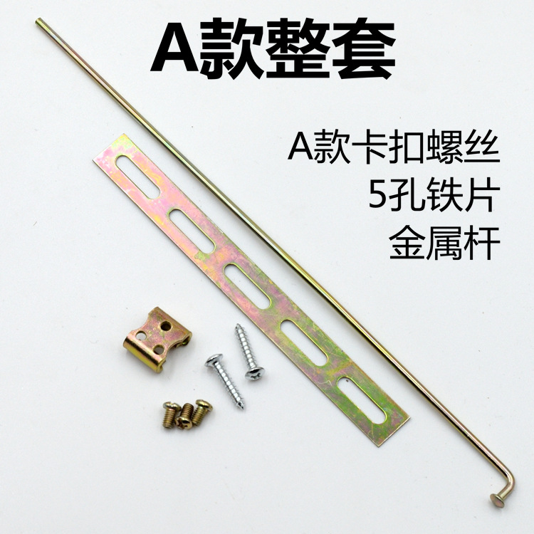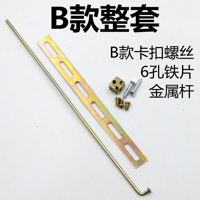 Железный лист с 5 отверстиями; Железный лист с 6 отверстиями; Металлический тяговый стержень; Винт типа А (железный); Винт типа B (сплав); Полный комплект типа А (темновая тяга с 5 отверстиями и защелкивающимися винтами); Полный комплект типа B (темновая тяга с 6 отверстиями и защелкивающимися винтами)
