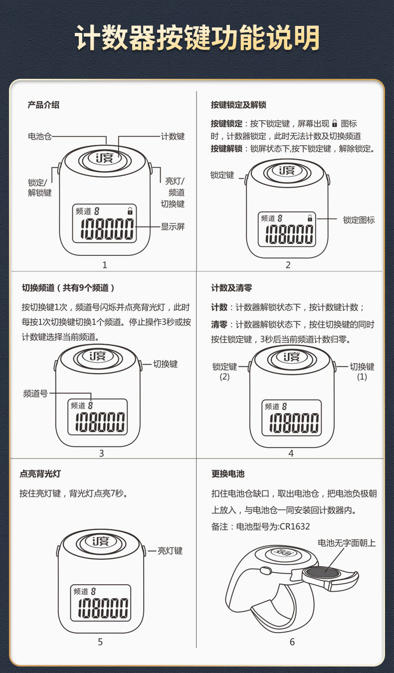 Zangcun ручной прессованный электронный цифровой дисплей, счетчик кольцевого типа со светящимся счетчиком, перезаряжаемый счетчик точек