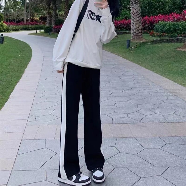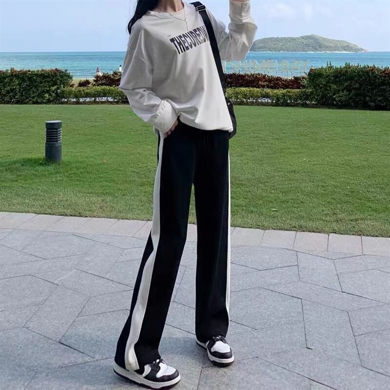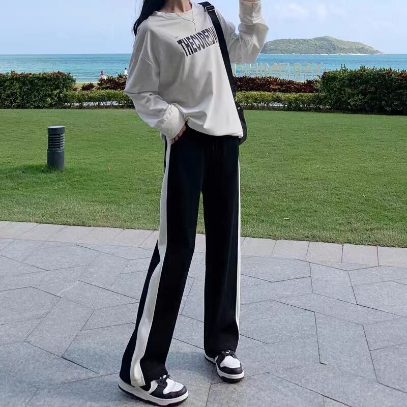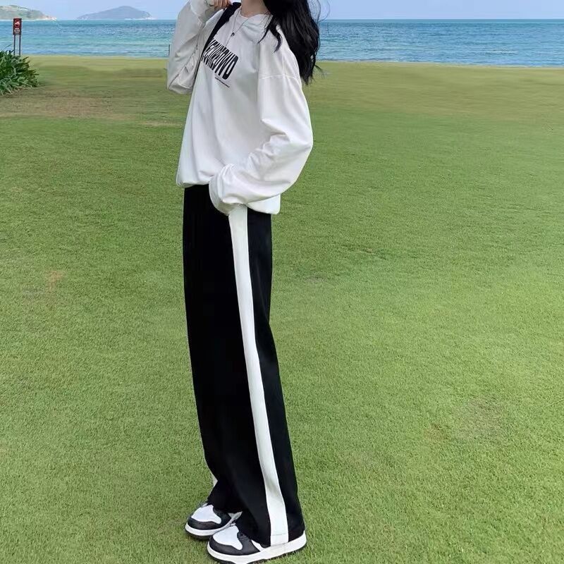 Женские свободные утягивающие весенне-осенние новые широкие брюки для студенток, повседневные прямые длинные брюки с высокой талией в корейском стиле