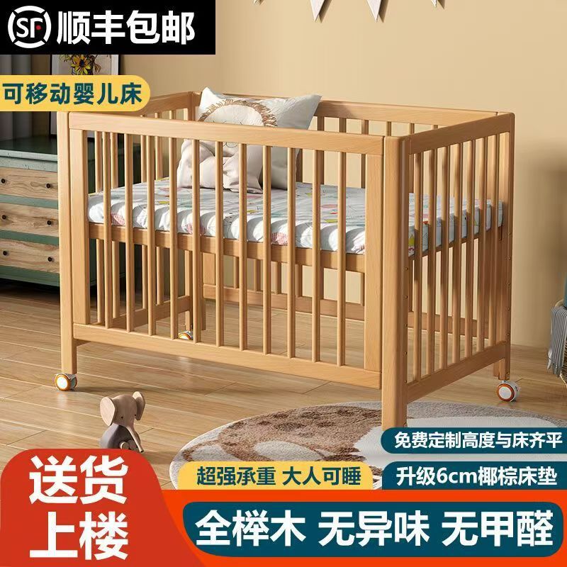 Кровать из цельного дерева, детская кроватка, большая кровать, съемная детская кровать, детская кроватка из импортного бука, детская кроватка из цельного дерева