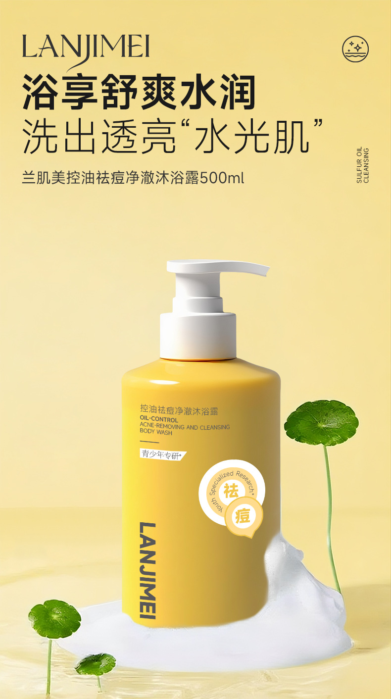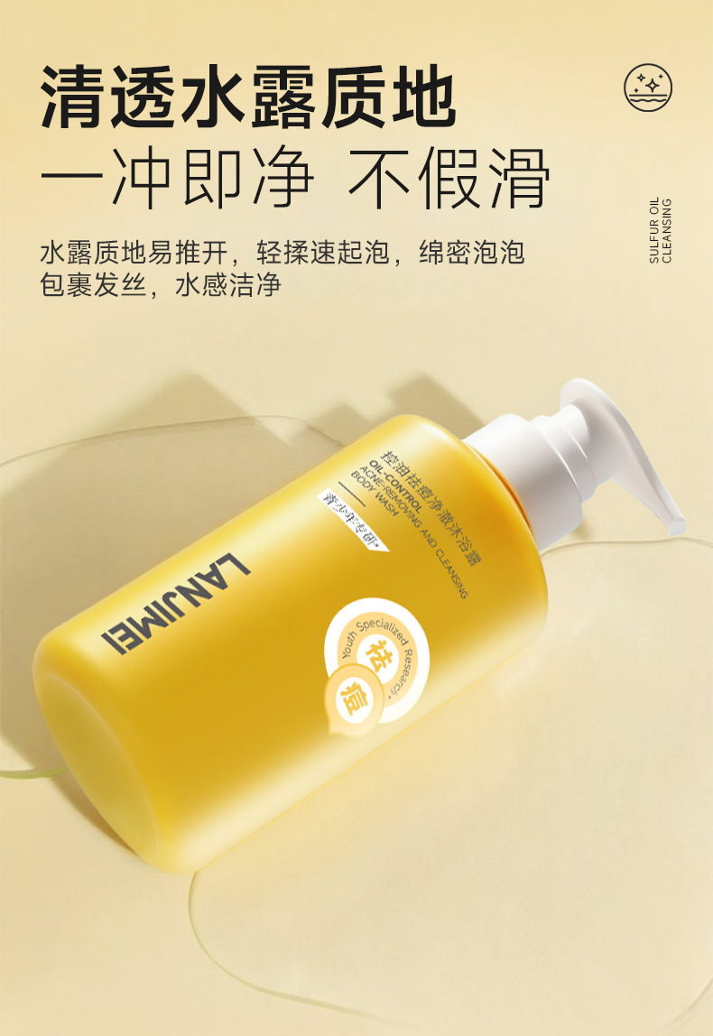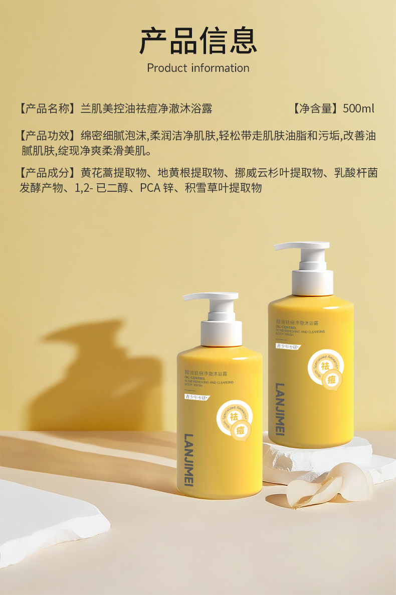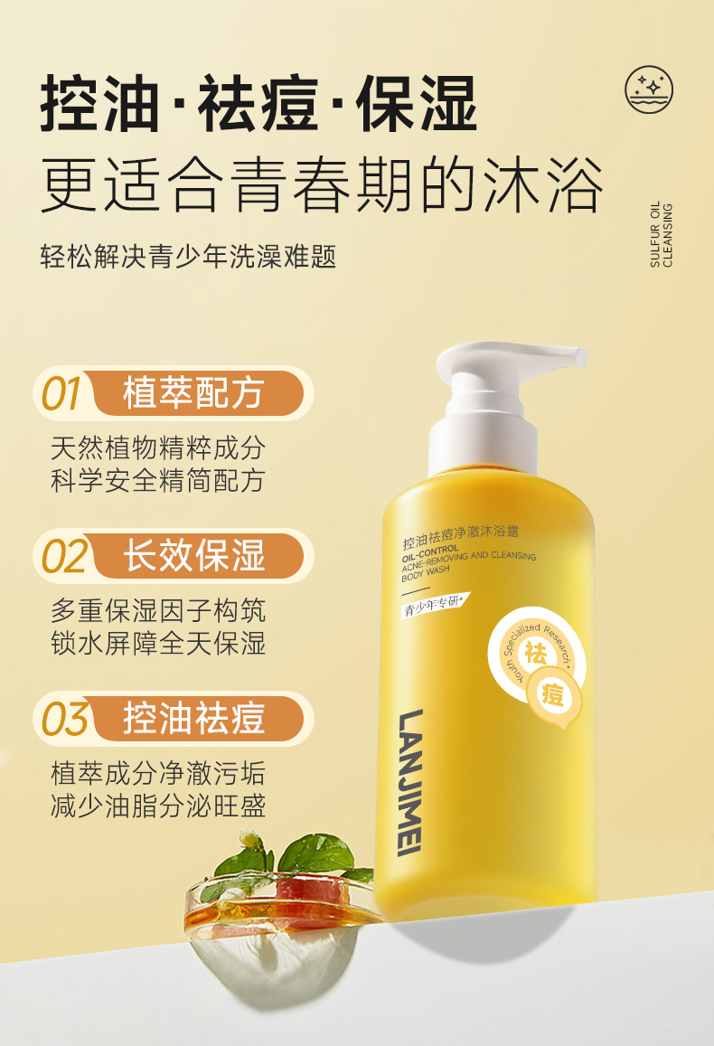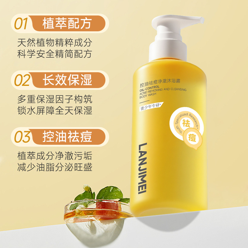 Lanjimei Oil Control Гель для душа с ревенью против прыщей, 500 мл