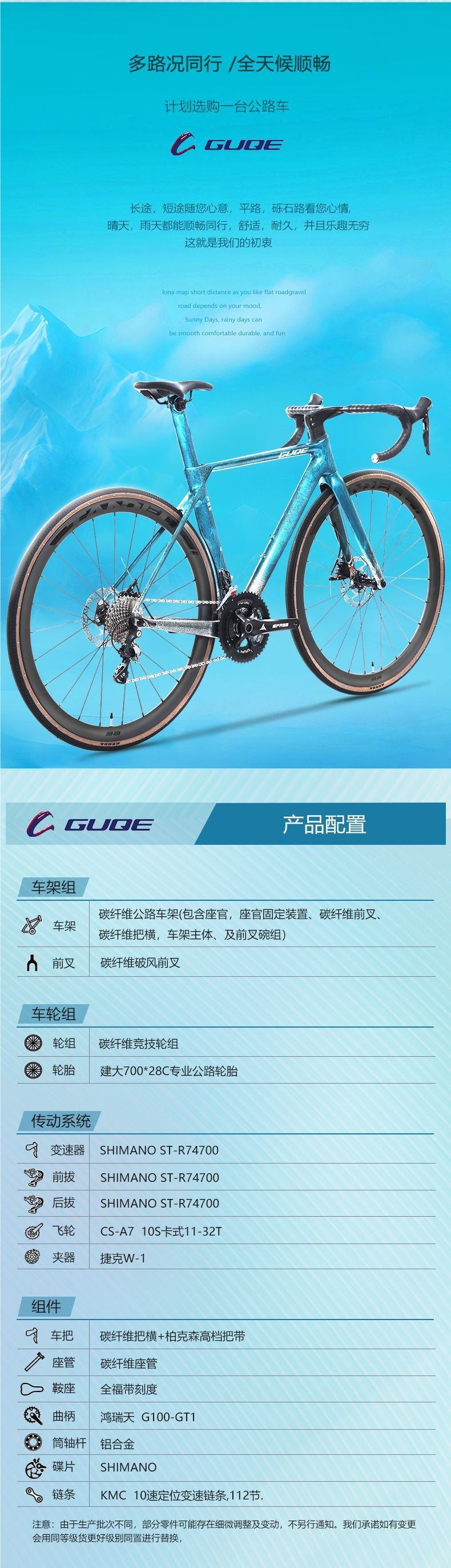 Карбоновое волокно, трансмиссия Shimano, обод из алюминиевого сплава; Карбоновое волокно-Шимано Трансмиссия-Обод из карбонового волокна