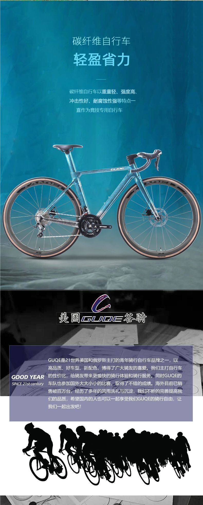 GUQE Valley Cycling 700c Велосипед из углеродного волокна для взрослых Студенческий гидравлический дисковый тормоз 20-скоростной соревнования.