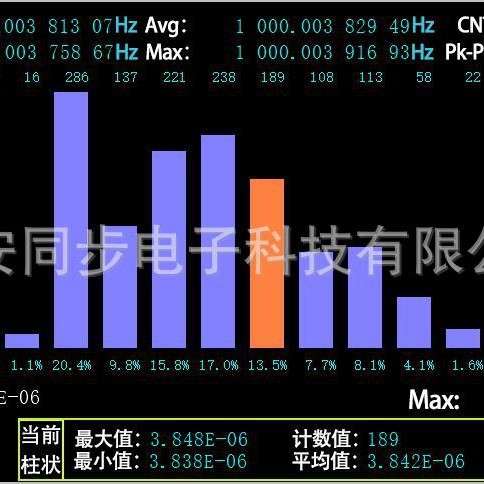 测量频率/周期/平均值/最小值/最大值/峰峰值/相对频率偏差/标准偏差/阿伦方差/ppm/ppb/瞬时日差/瞬时月差/瞬时年差/上下限测量 |