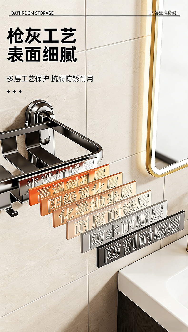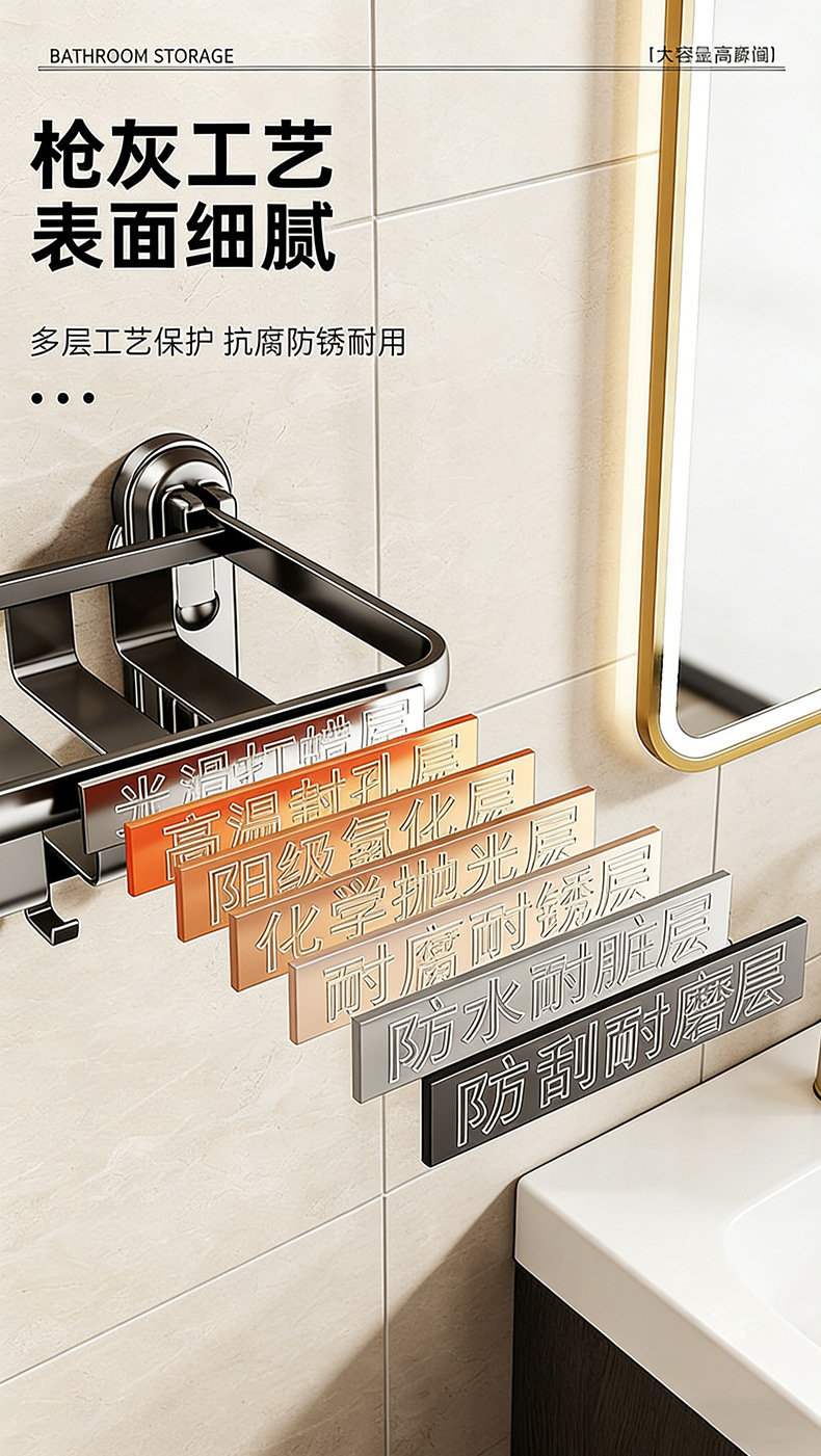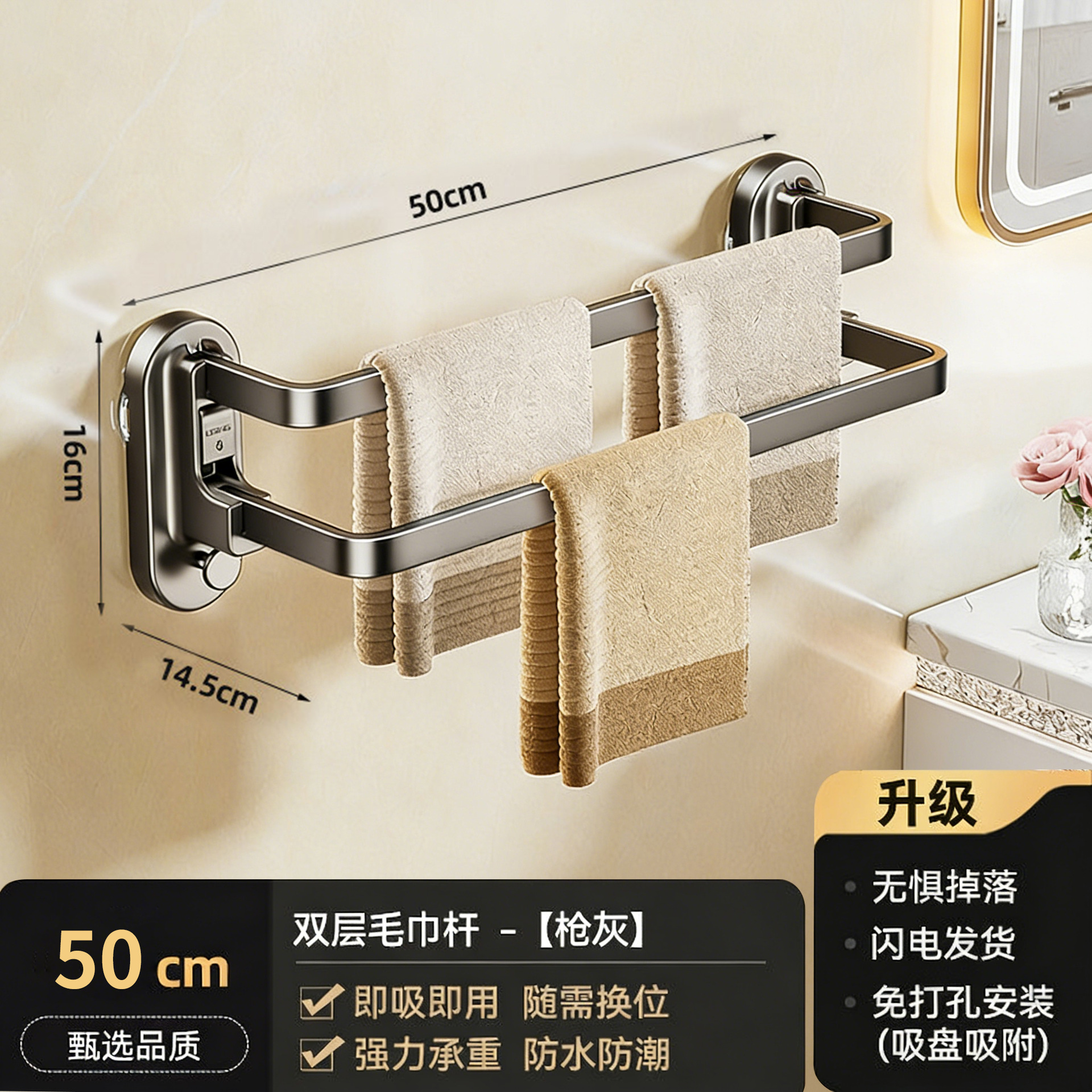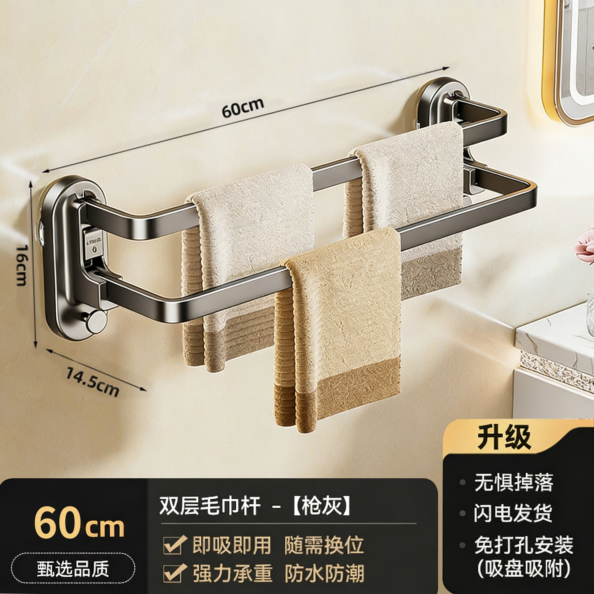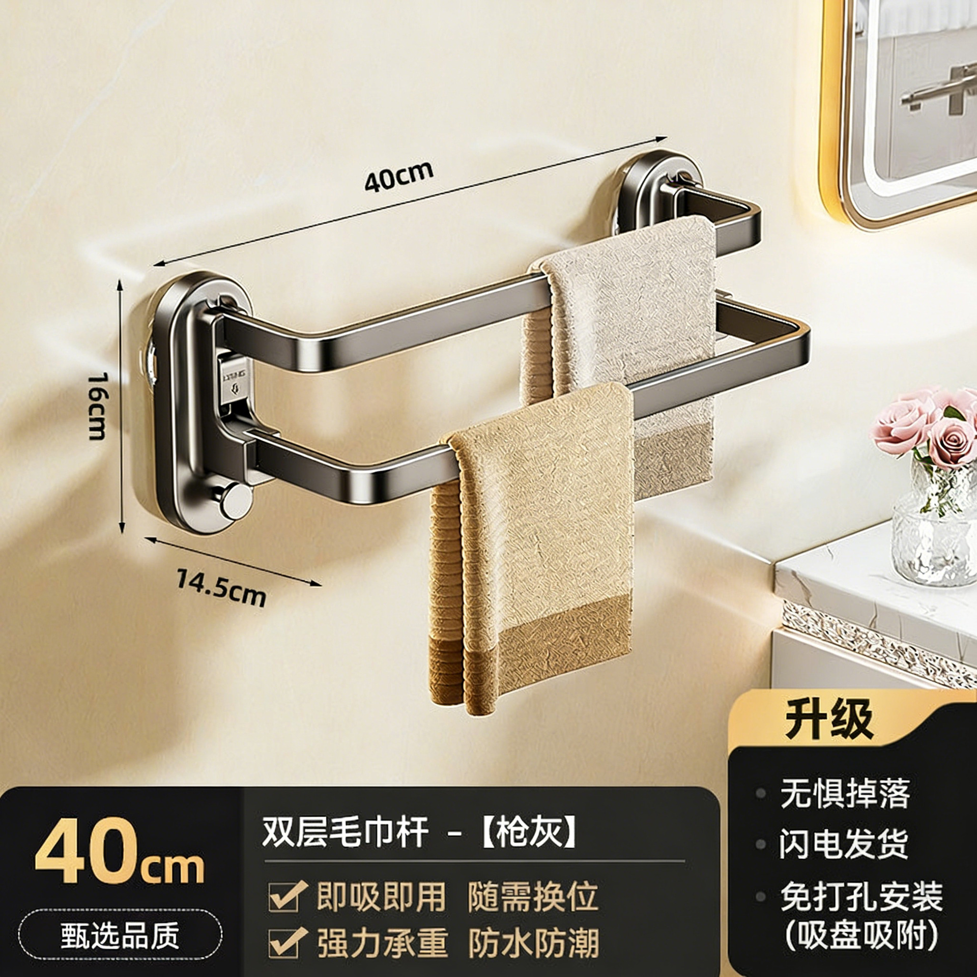 Пистолетно-серая вешалка для полотенец без перфорации, алюминиевая вешалка для полотенец для ванной комнаты, стеллаж для хранения в туалете, настенная ванная комната, ванная комната
