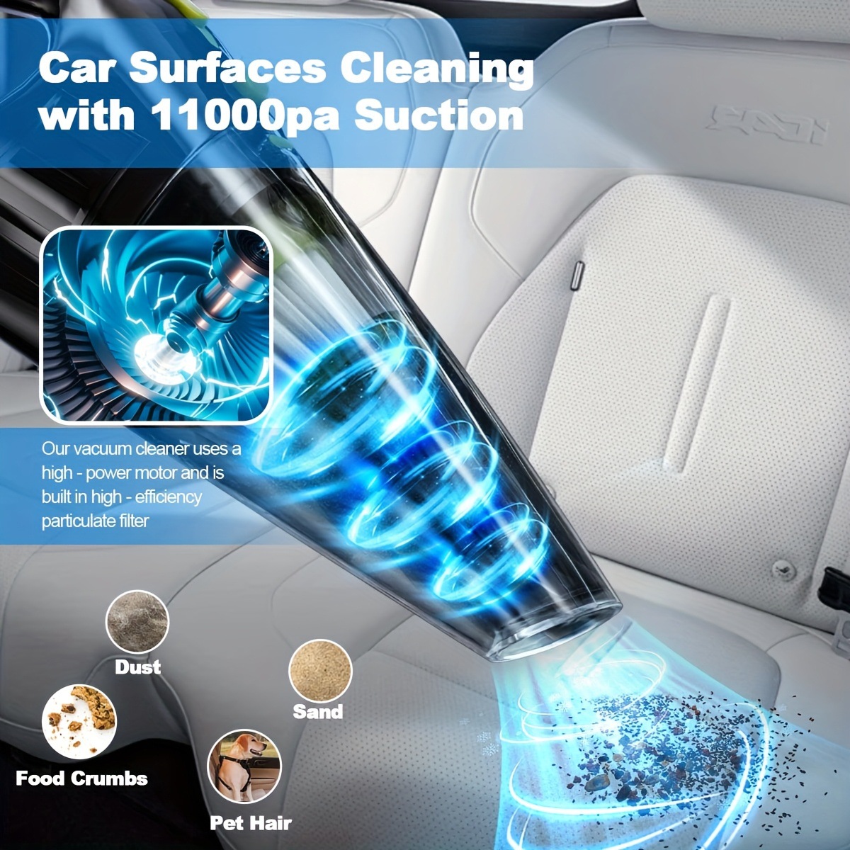 Портативный автомобильный пылесос с мощностью 11000 Па и 600 Вт для трансграничных поездок
