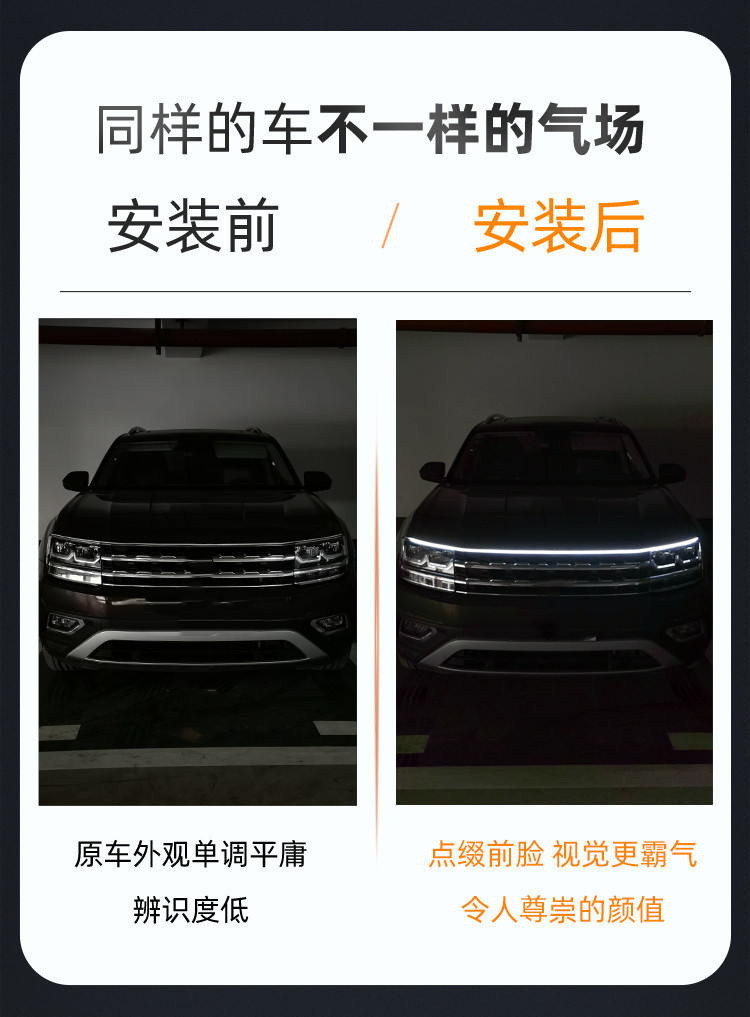 Автомобильная светодиодная подсветка капота с динамической сканированием, универсальная декоративная светодиодная лента для решетки радиатора с дневными ходовыми огнями.