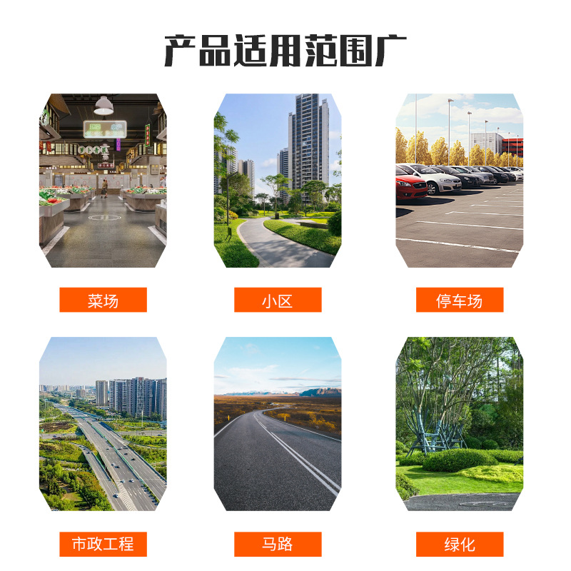 Жилые зеленые пояса, тротуары, муниципальные дорожные зеленые пояса, немоторизованные полосы движения, создание садового ландшафта, автостоянки, тяжелые городские автомагистрали.