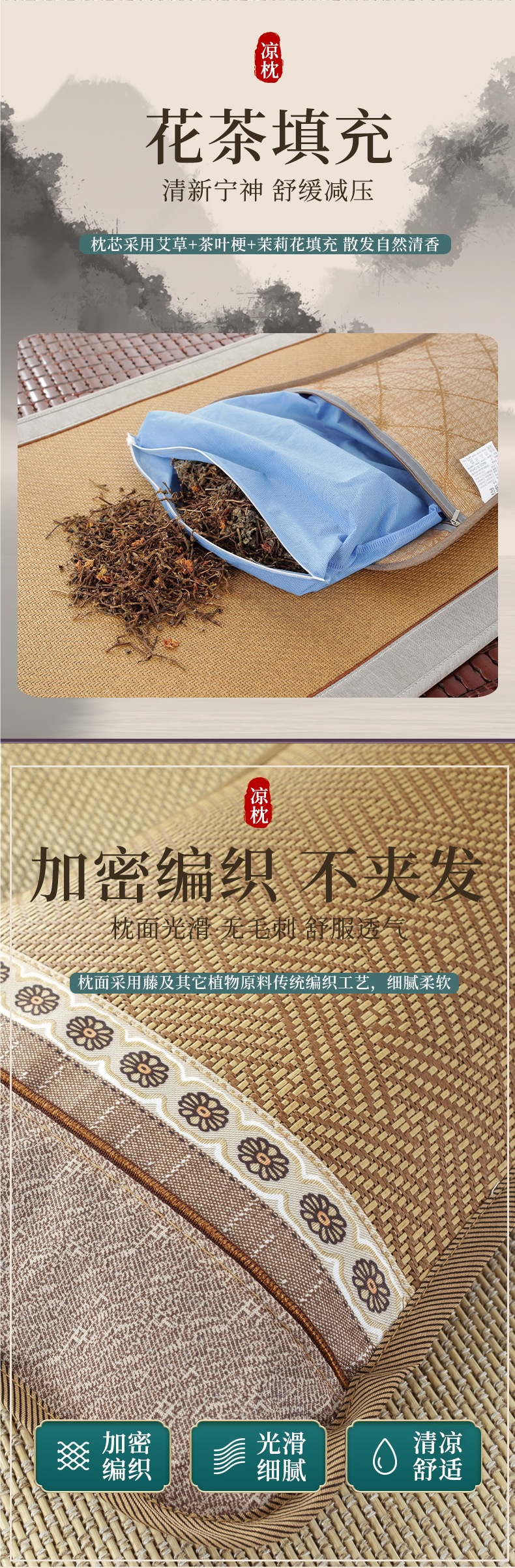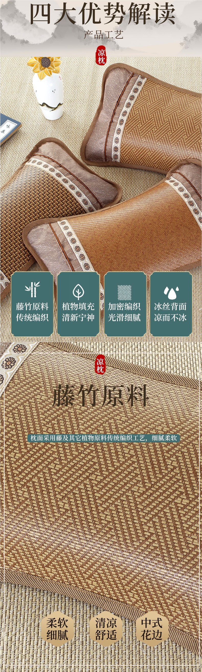 Чайная подушка, коврик из ледяного шелка, охлаждающая подушка, летняя бамбуковая подушка, летняя подушка для взрослых, поддержка шейного отдела позвоночника, сон, одиночный мужской маджонг