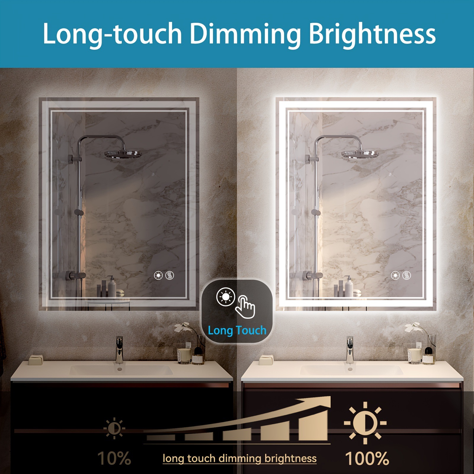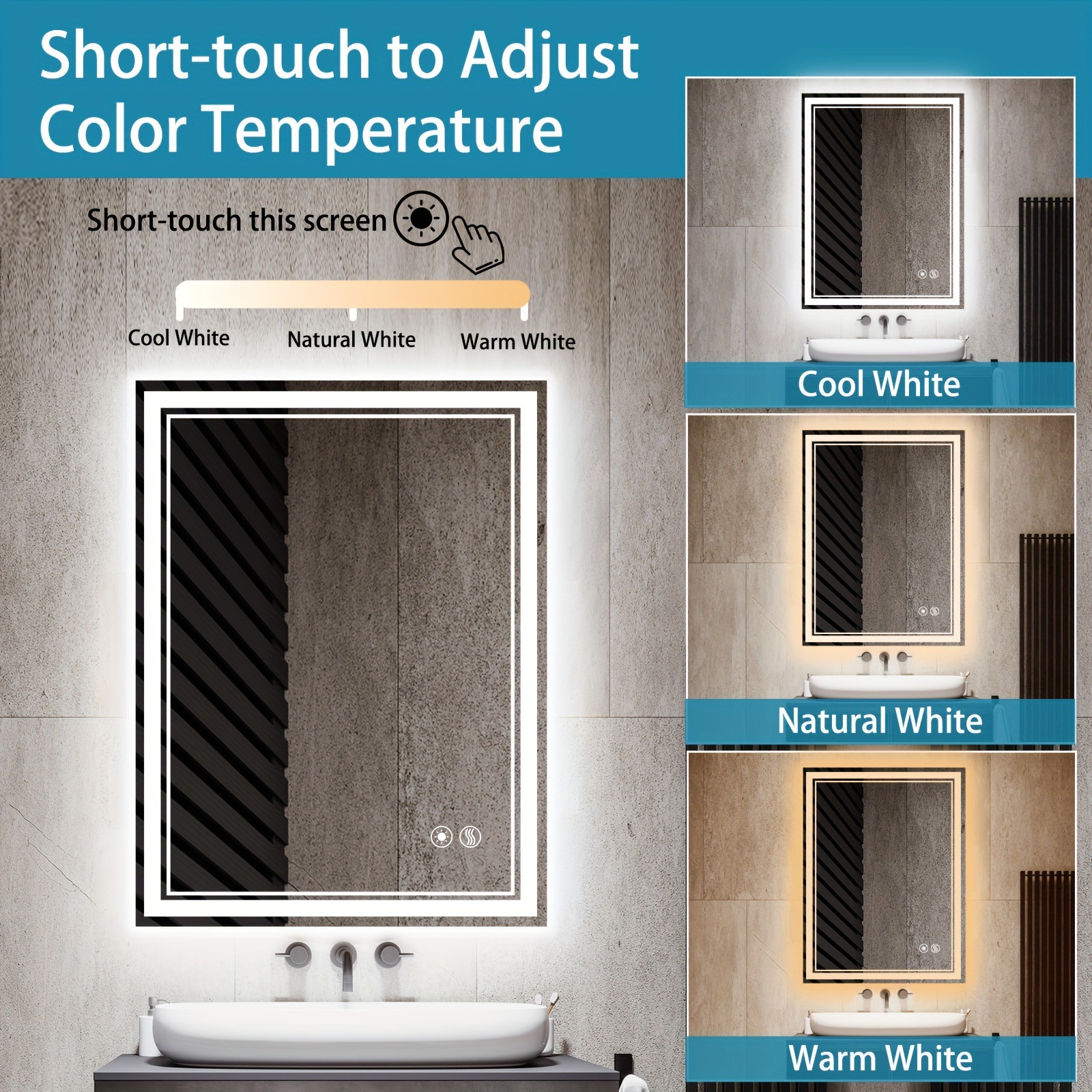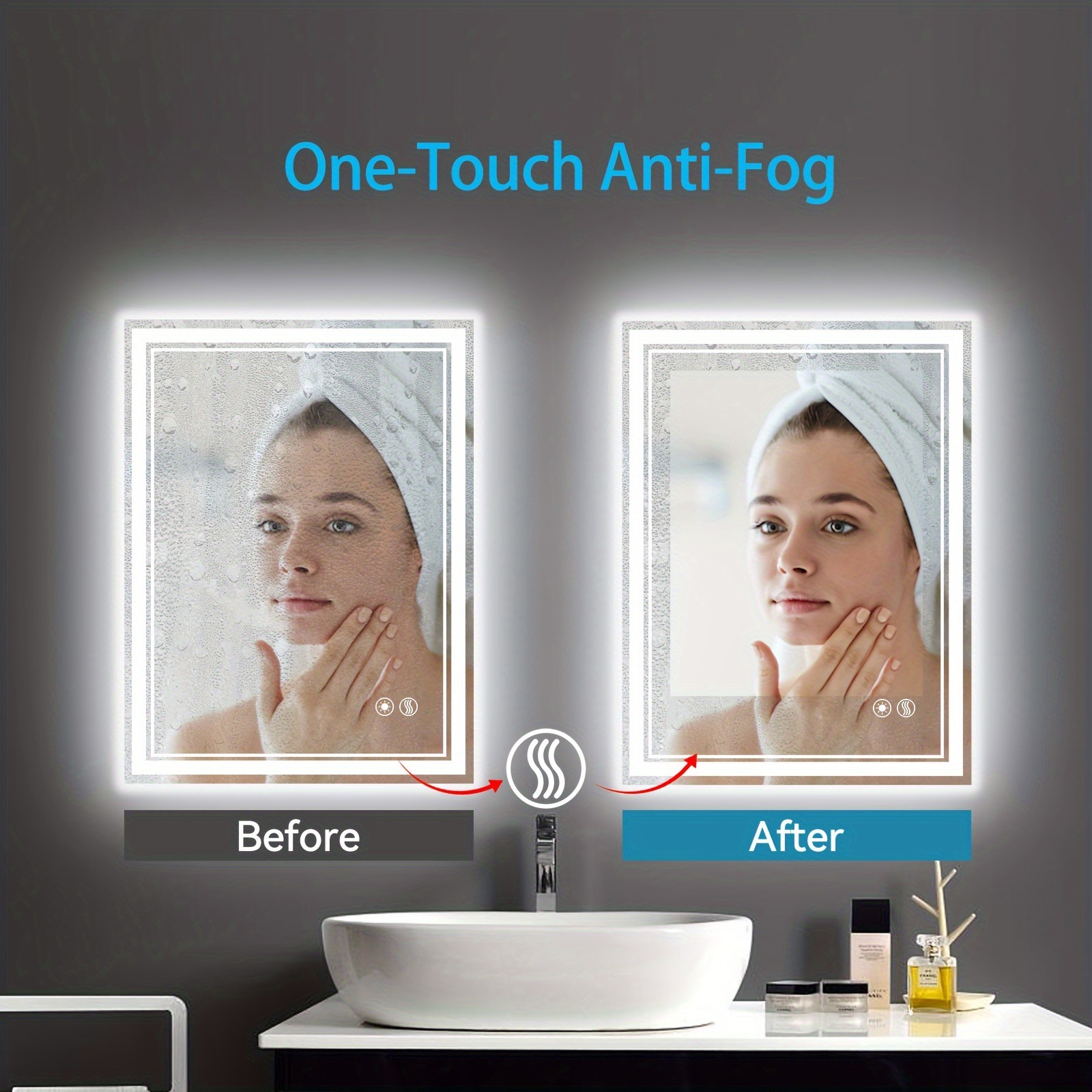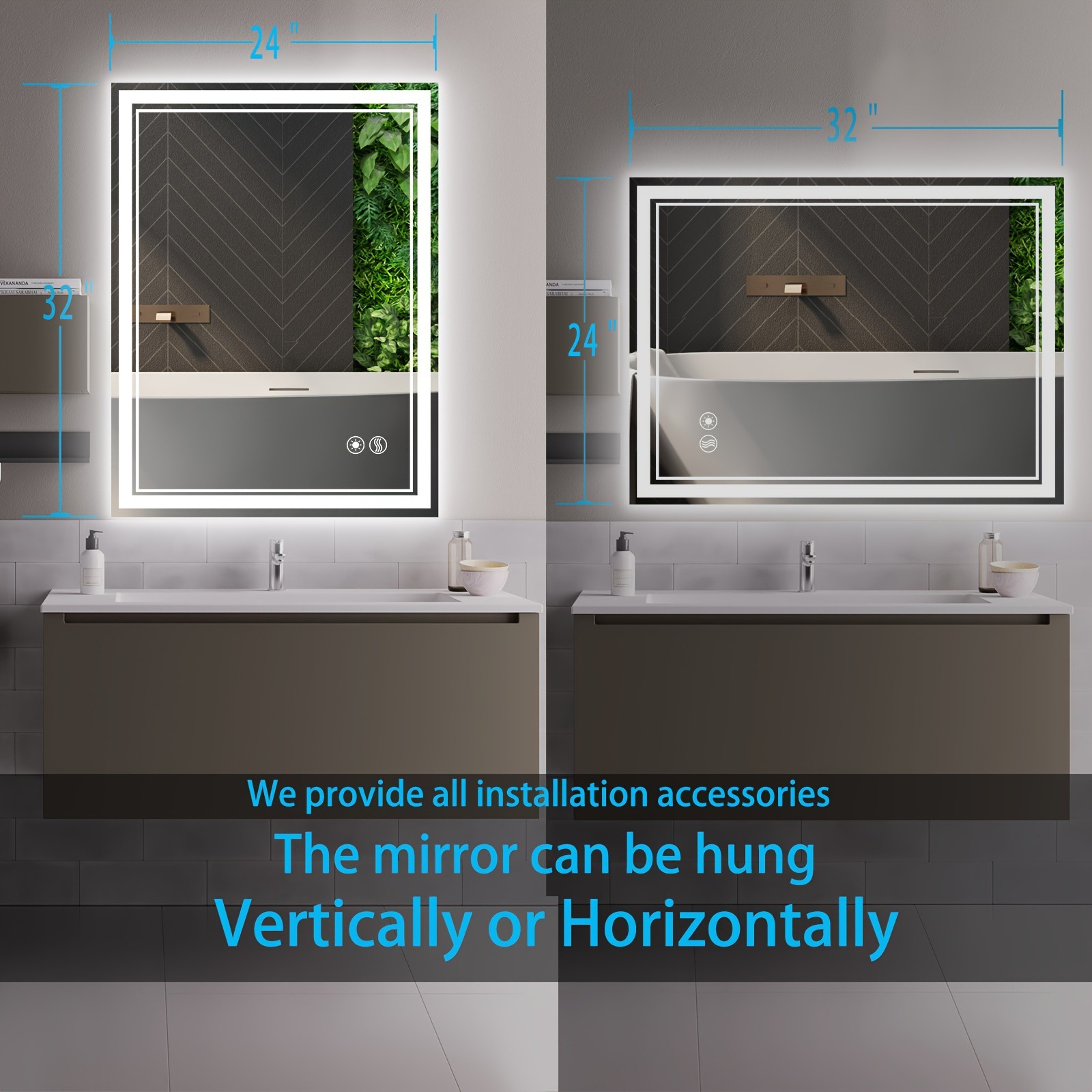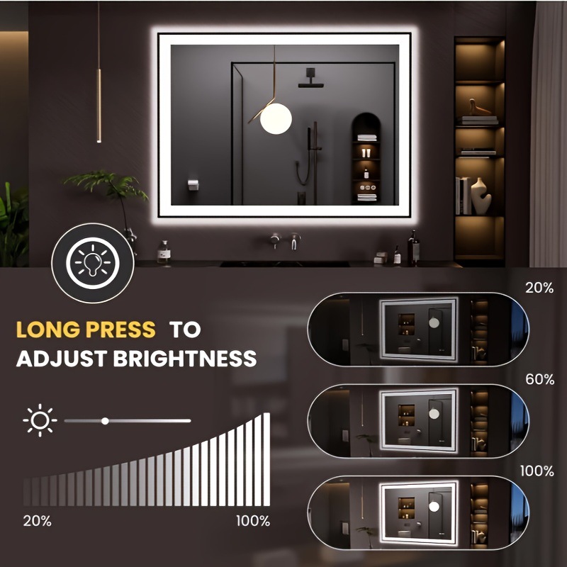 2025 новых кросс-бордерных зеркал для ванной с подсветкой, антизапотевающим покрытием, размером 24x32'' и 20x28'', для дропшипинга