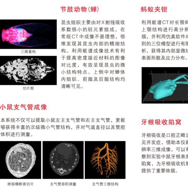 - Ø 在活体动物扫描中,动物或样品在固定或者麻醉状态下保持不动,实现快速、连续的扫描过程,有利用进行活体的动物实验,并达到良好的剂量控制。