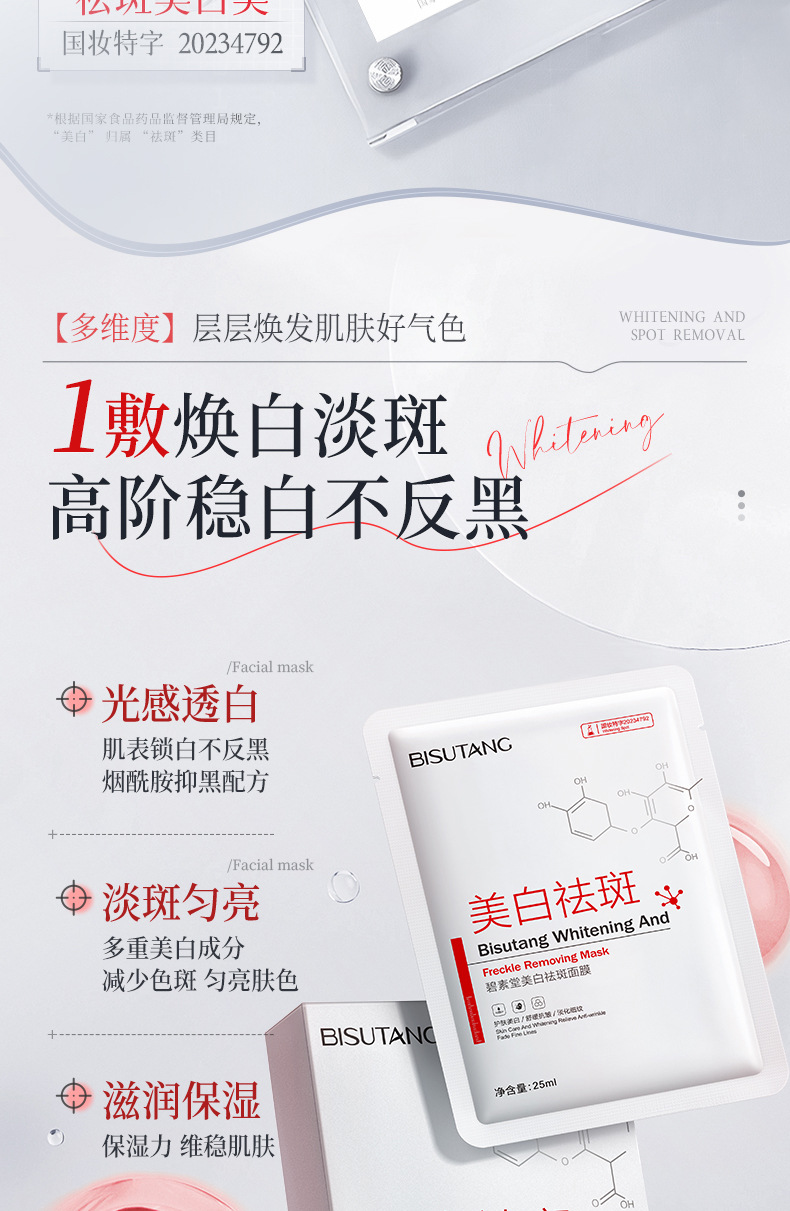 Bisutang Отбеливающая и пятнистая маска для лица Увлажняющий ниацинамид Осветляет цвет кожи Удаляет желтизну и темноту Оставляет до поздней ночи Уход за кожей Готовый запас