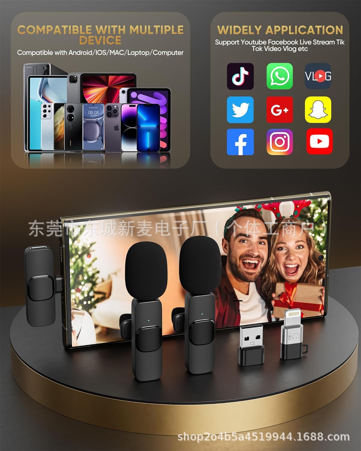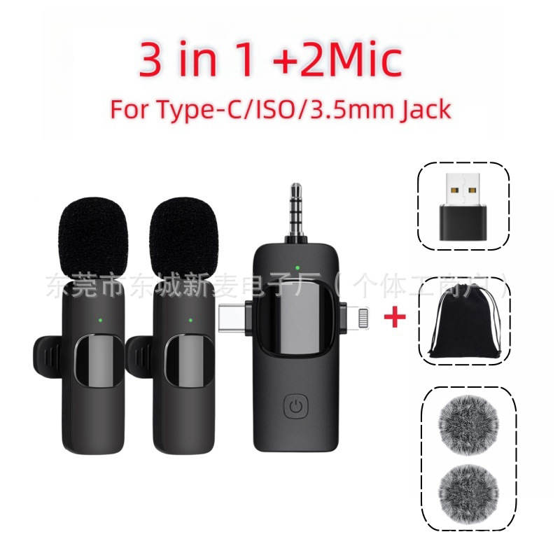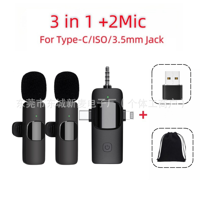 Беспроводной петличный микрофон K8K9, популярный за рубежом, K15, мини-радиомикрофон с шумоподавлением, три в одном, для мобильных телефонов и прямой трансляции