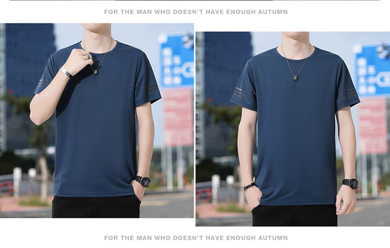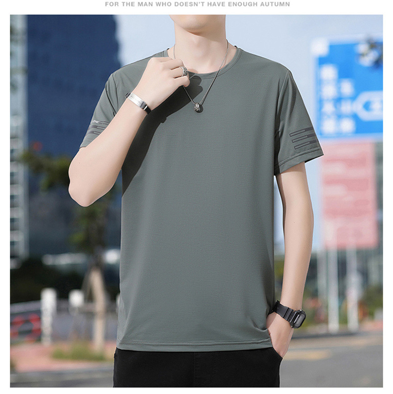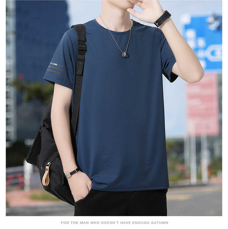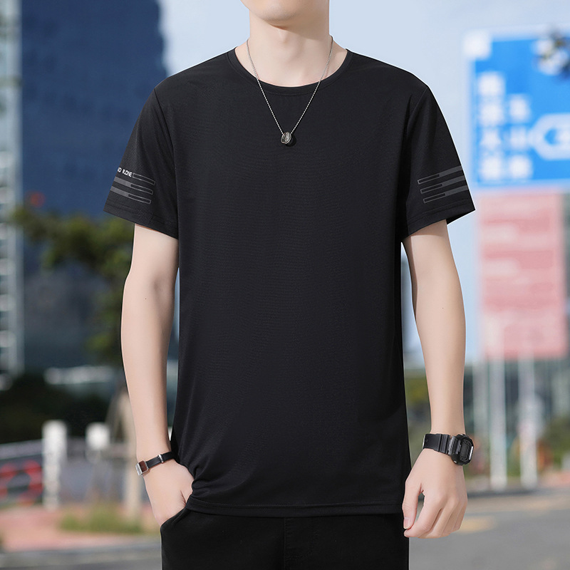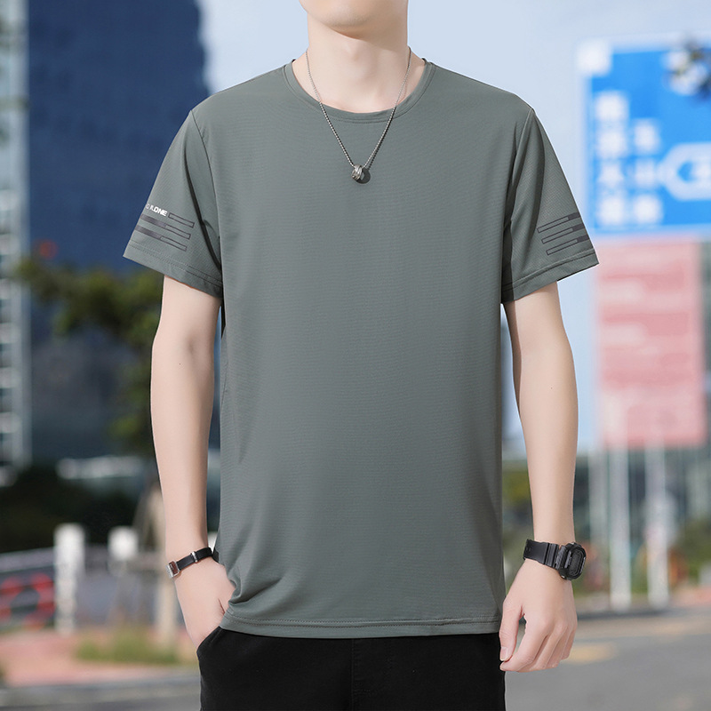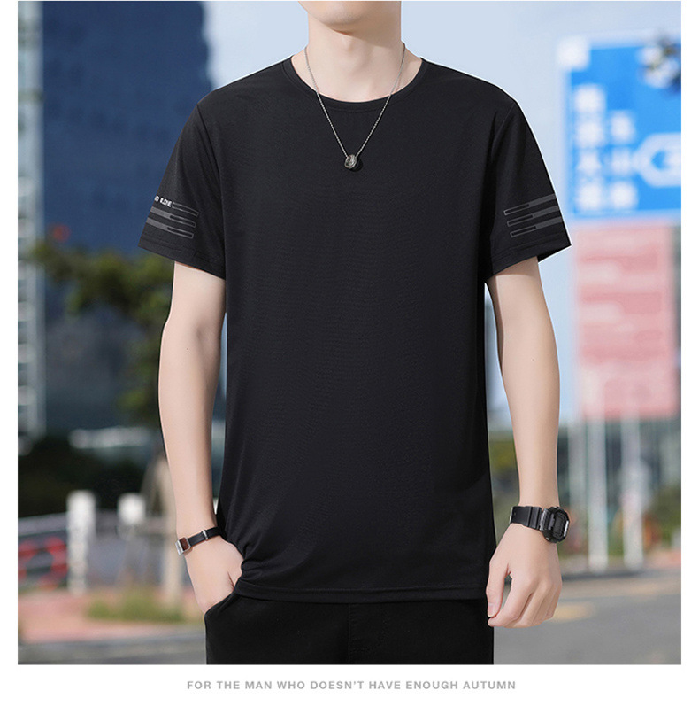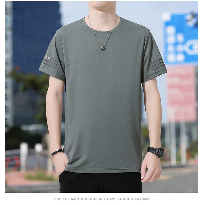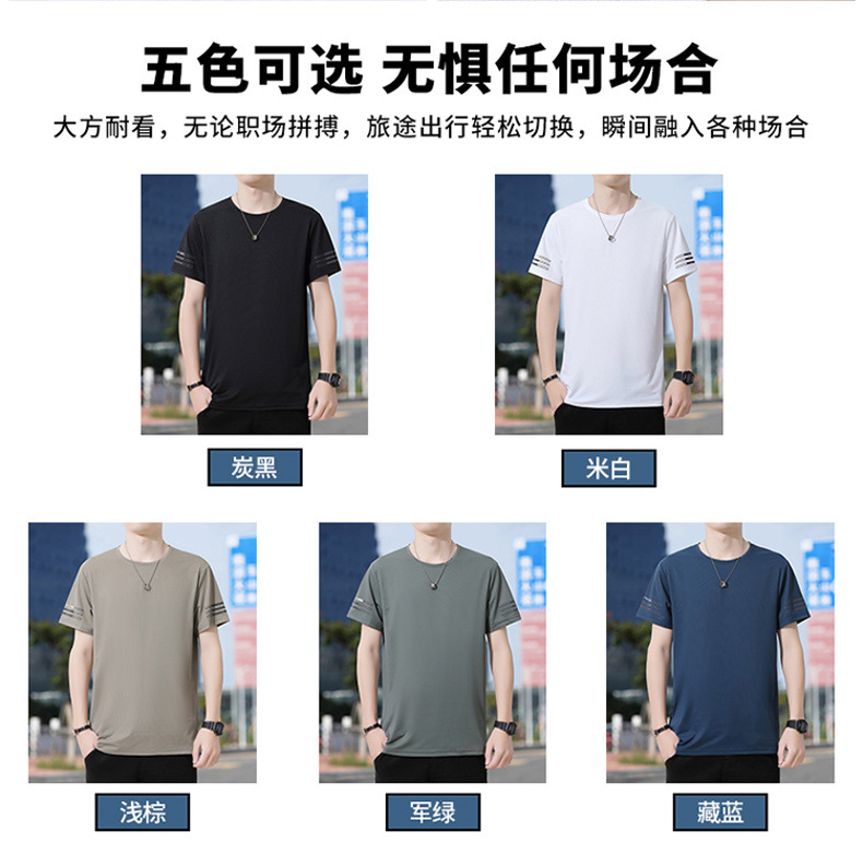 Новая летняя мужская футболка больших размеров из ледяного шелка, эластичная, дышащая, с коротким рукавом, круглым вырезом, быстросохнущая.