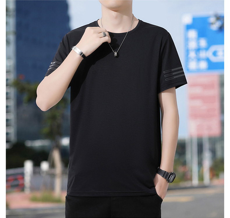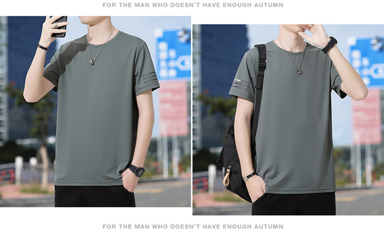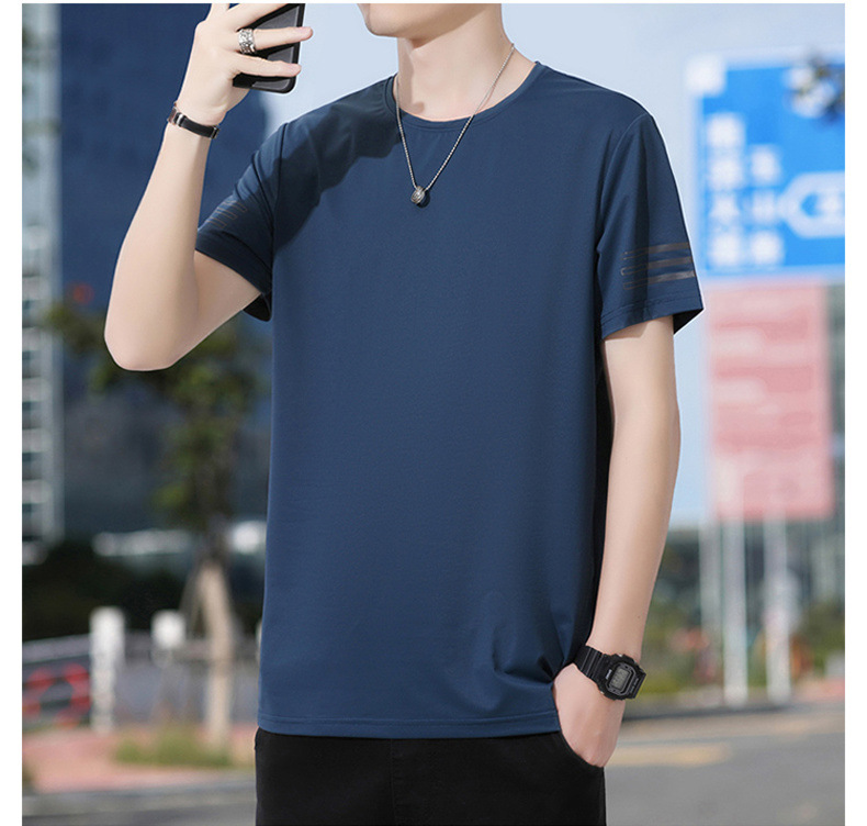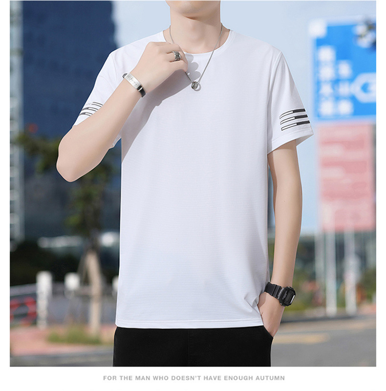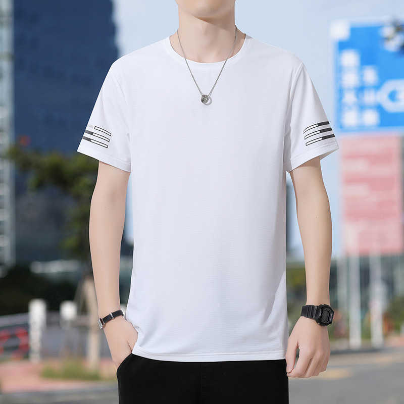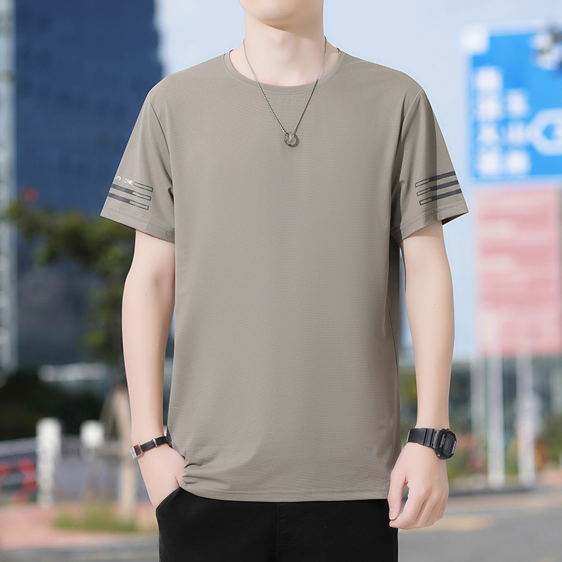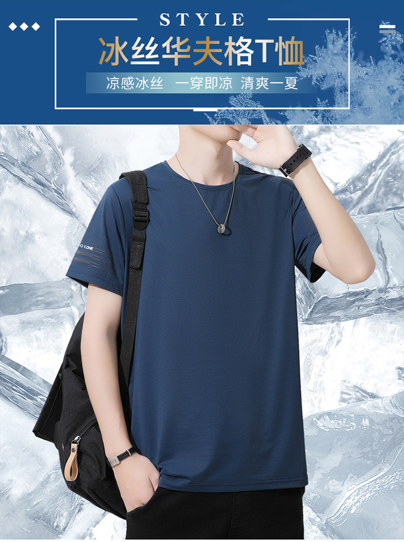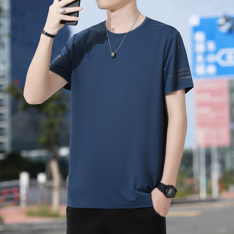 Новая летняя мужская футболка больших размеров из ледяного шелка, эластичная, дышащая, с коротким рукавом, круглым вырезом, быстросохнущая.